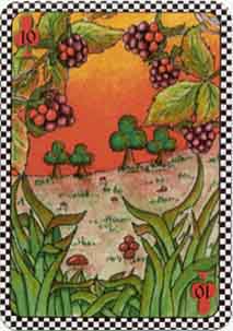 The deck is poker sized and is designed functionally as well as artistically. Indices are placed inside the corner pips, and the colour for each season is incorporated into the design of each card. It is perfectly usable for play, but it's main attraction is the sheer wealth of imaginative expression and originality.