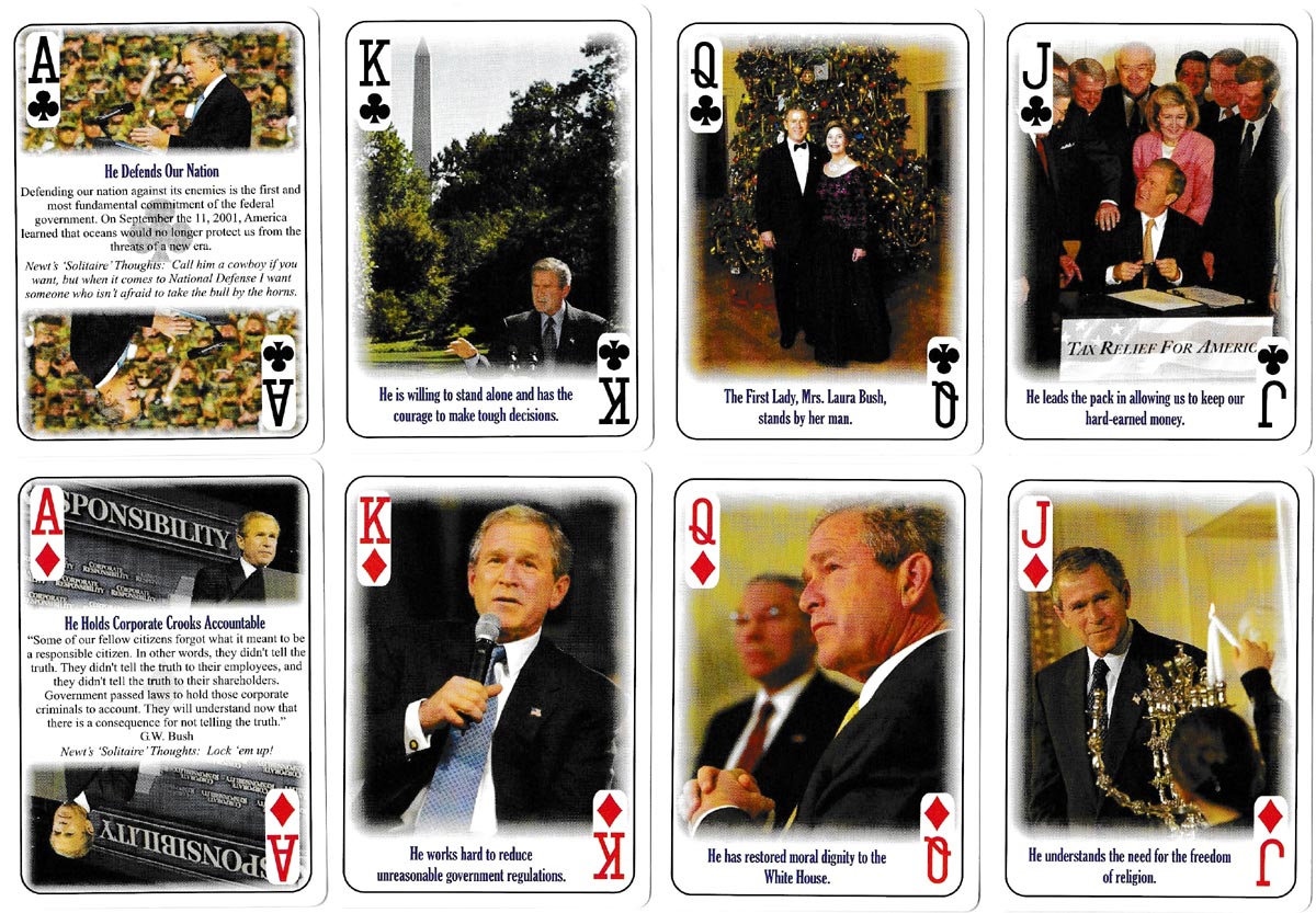 Above: “52 reasons to re-elect George Bush” political playing cards produced by Newt’s Playing Cards in 2004.