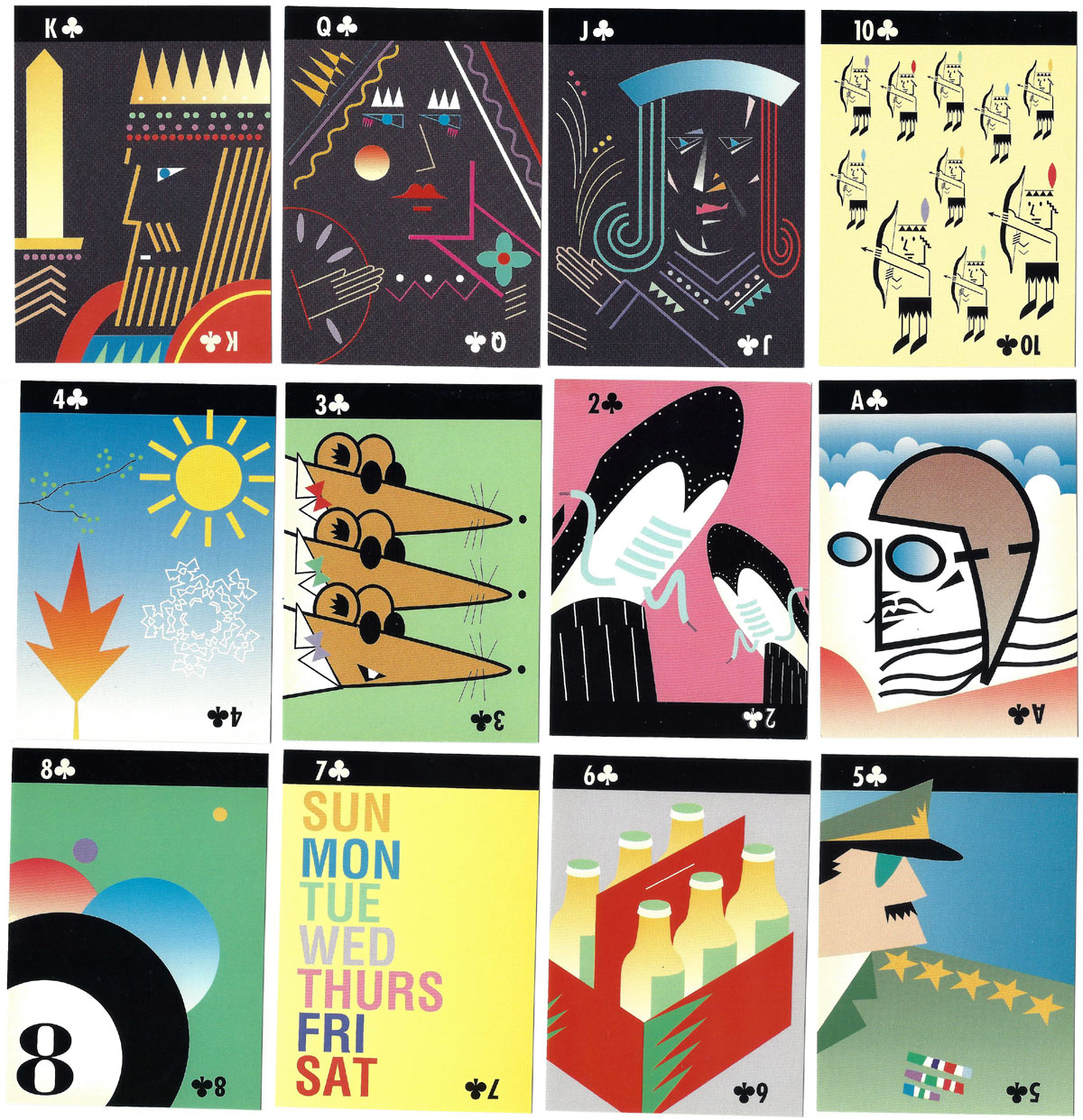 Above: the Adobe digital deck by multiple artists and designers, published by Adobe Systems, 1988. 52 cards + 2 jokers.