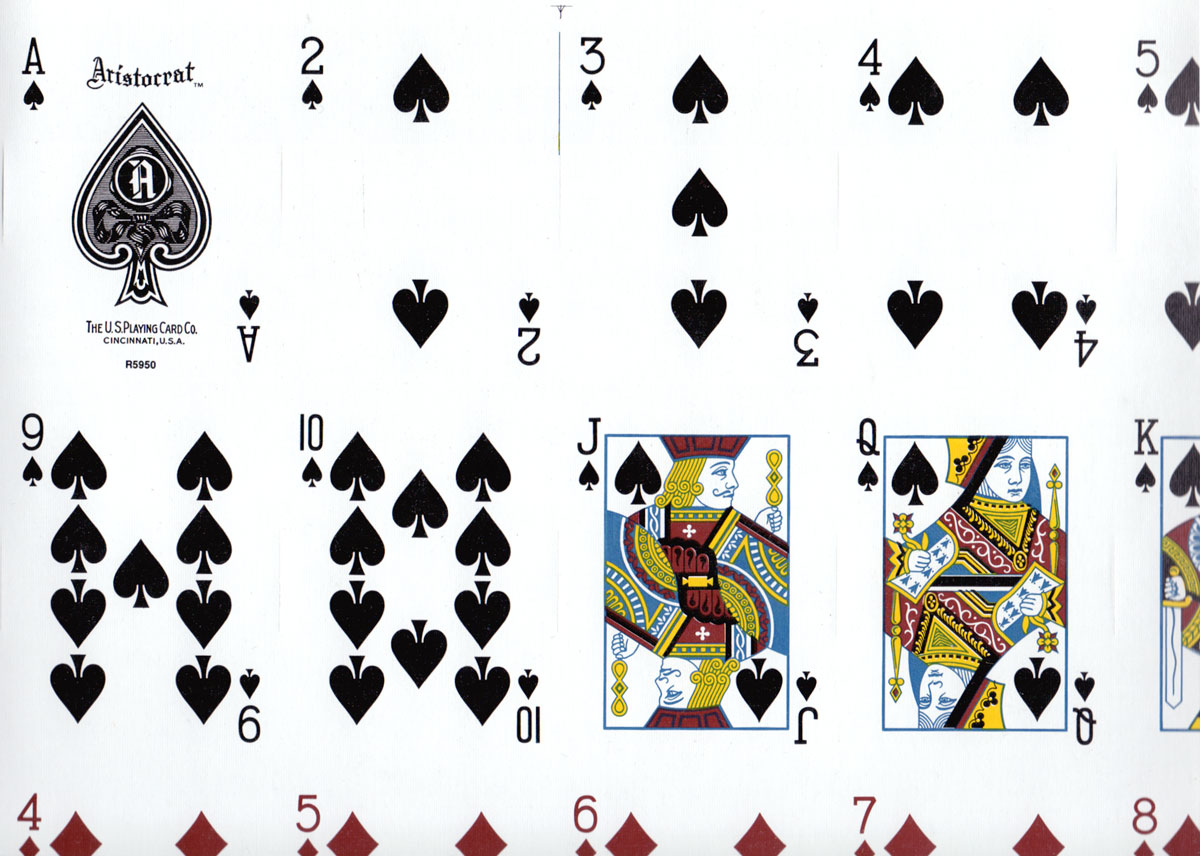 There were at least two or three variations of the ‘stock certificate’ or ‘bank note’ back design and when the company was eventually purchased by the Russell Playing Card Company they were continued in Russell’s Aristocrat brand.