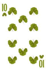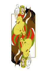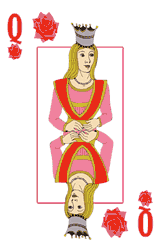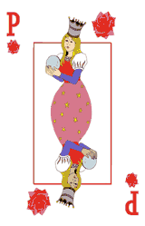 These cards are primarily designed for the 4 rummy games in the booklet called 10,000 Rummy: Sublime Rummy by Jim Davidson in which 52 or 104 cards are used. In this card deck, princesses replace jacks, and Mother Natures are added instead of jokers. Mother Natures don't have indexes since they are primarily designed as replacement cards in case any other cards get damaged or lost. For the aces, the single suits in the middle of the cards are fairly large since they are primarily designed for the 4 rummy games mentioned earlier where aces are almost always worth a lot of points. The author says: "with the 3rd and 4th games it looks really beautiful when there are a lot of cards melded all over a carpet or table". |