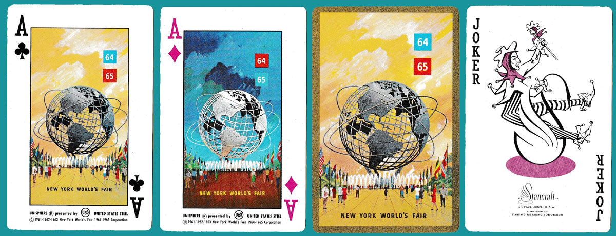 Above: Official World’s Fair Souvenir playing cards published by Stancraft, St. Paul Minnesota, USA, 1964-6.