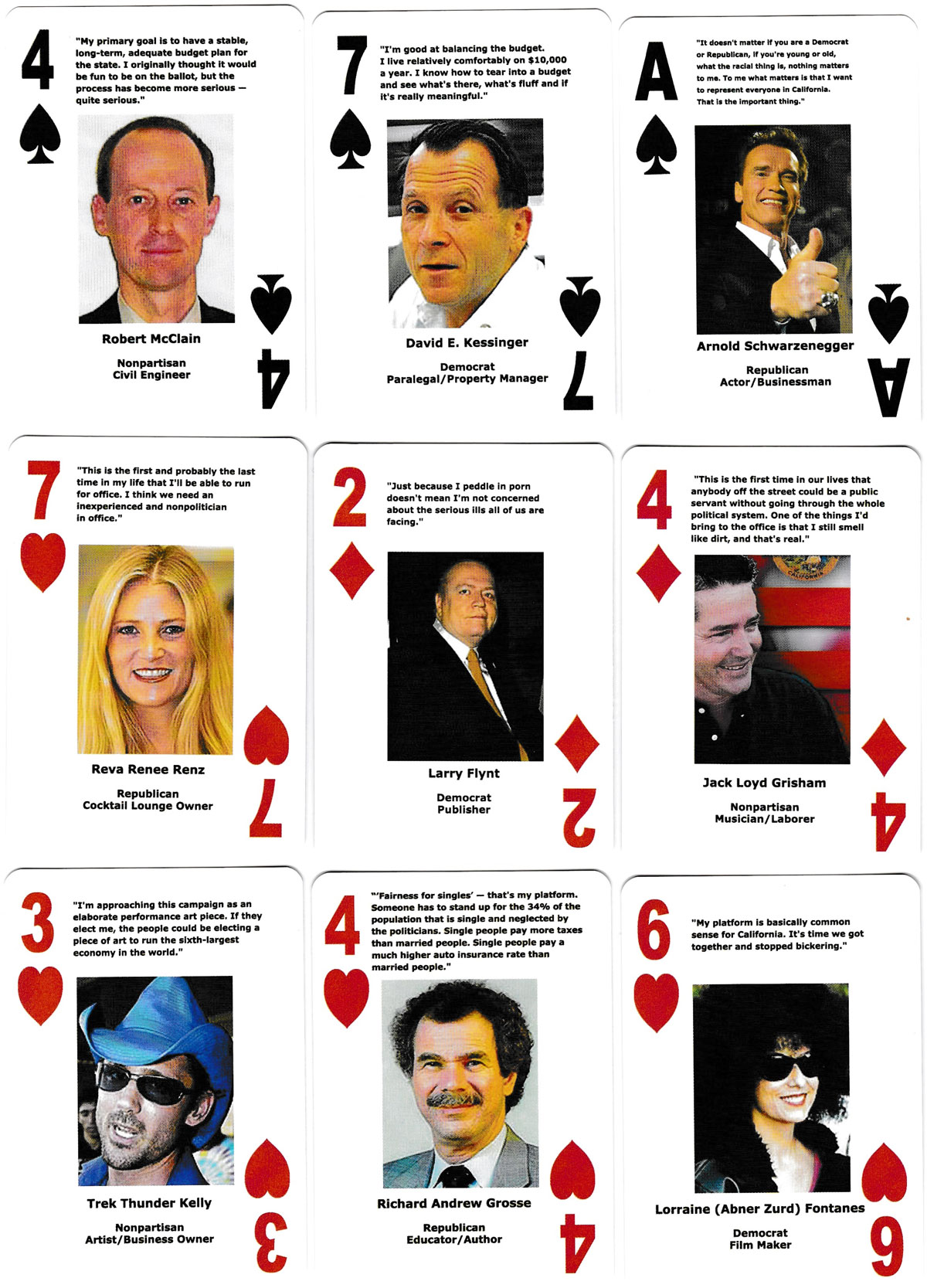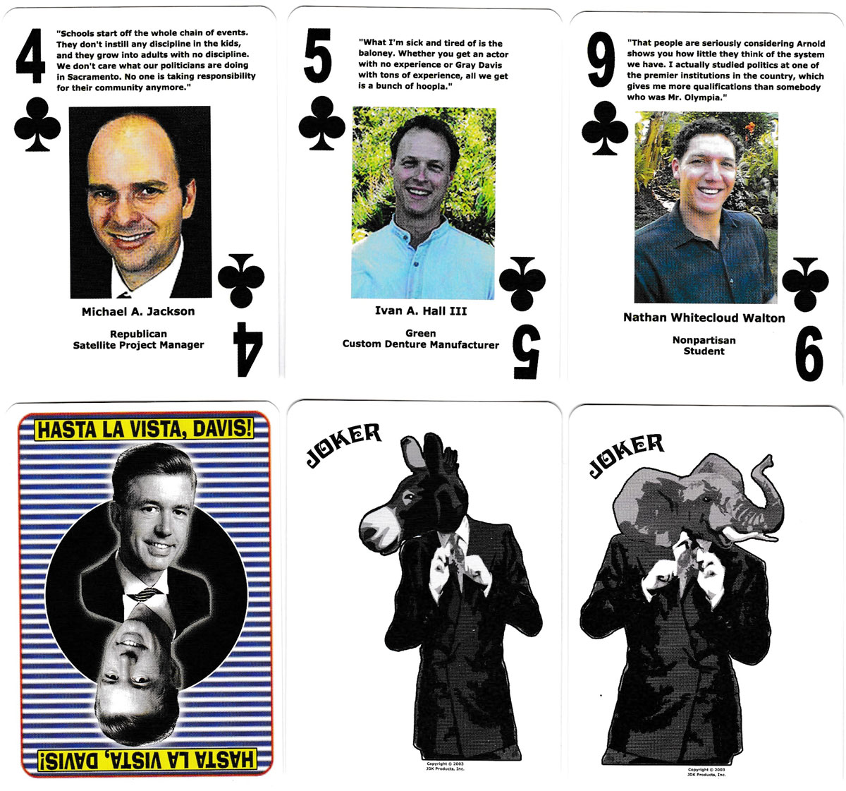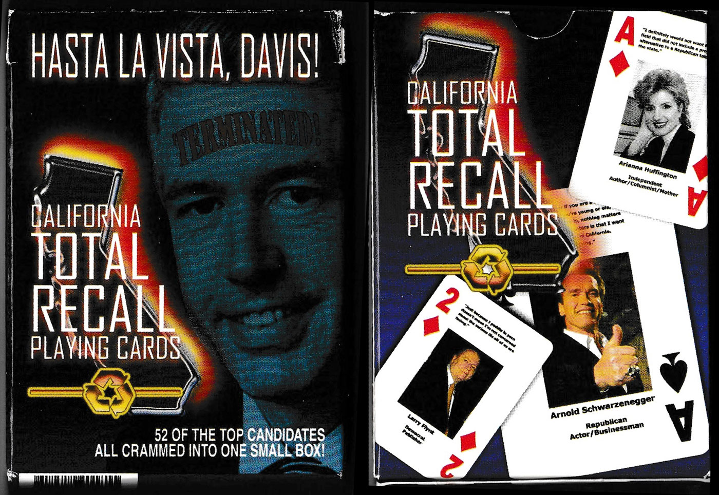 Above: California Total Recall Playing Cards (Hasta La Vista, Davis), published by JDK Products Inc, USA, 2003.