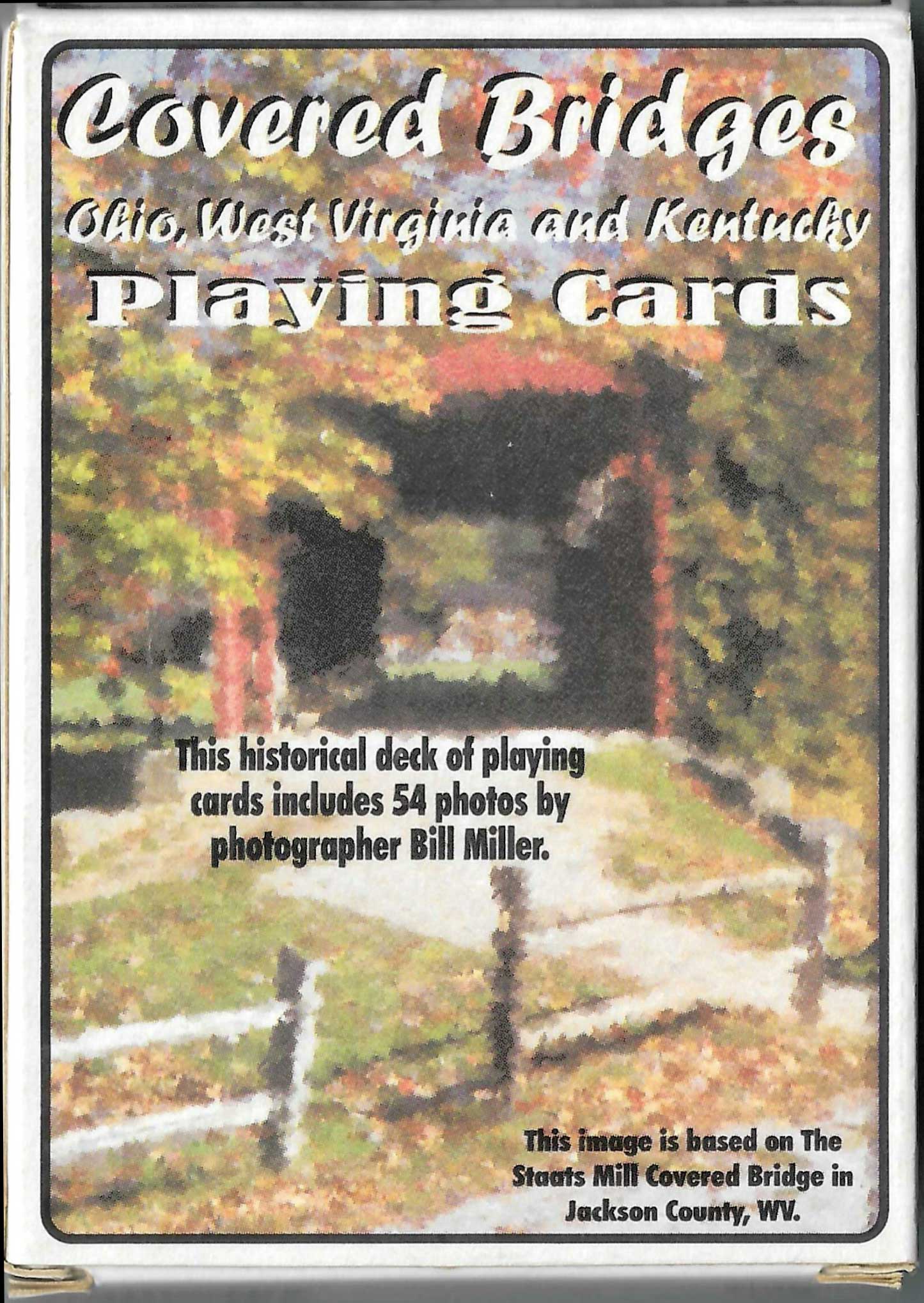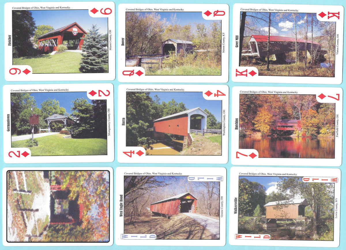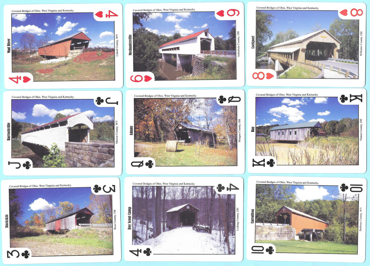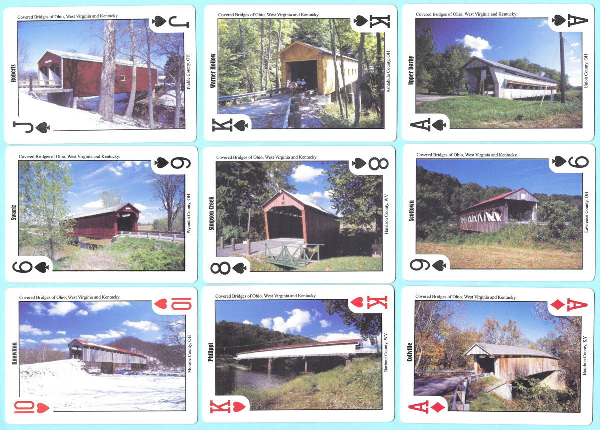 Above: historical covered bridges playing cards with photography by Bill Miller, produced in 2006 by Real Souvenir Playing Cards.