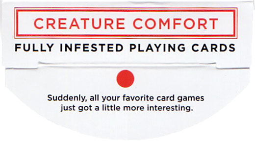 Above: “Creature Comfort” playing cards designed by Don Moyer, manufactured by the United States Playing Card Company, 2017. 52 cards + 2 whimsical jokers + 2 extra cards in sturdy tuck box. Standard poker size. The Monster Mayhem back design is available in black and red. Available here►