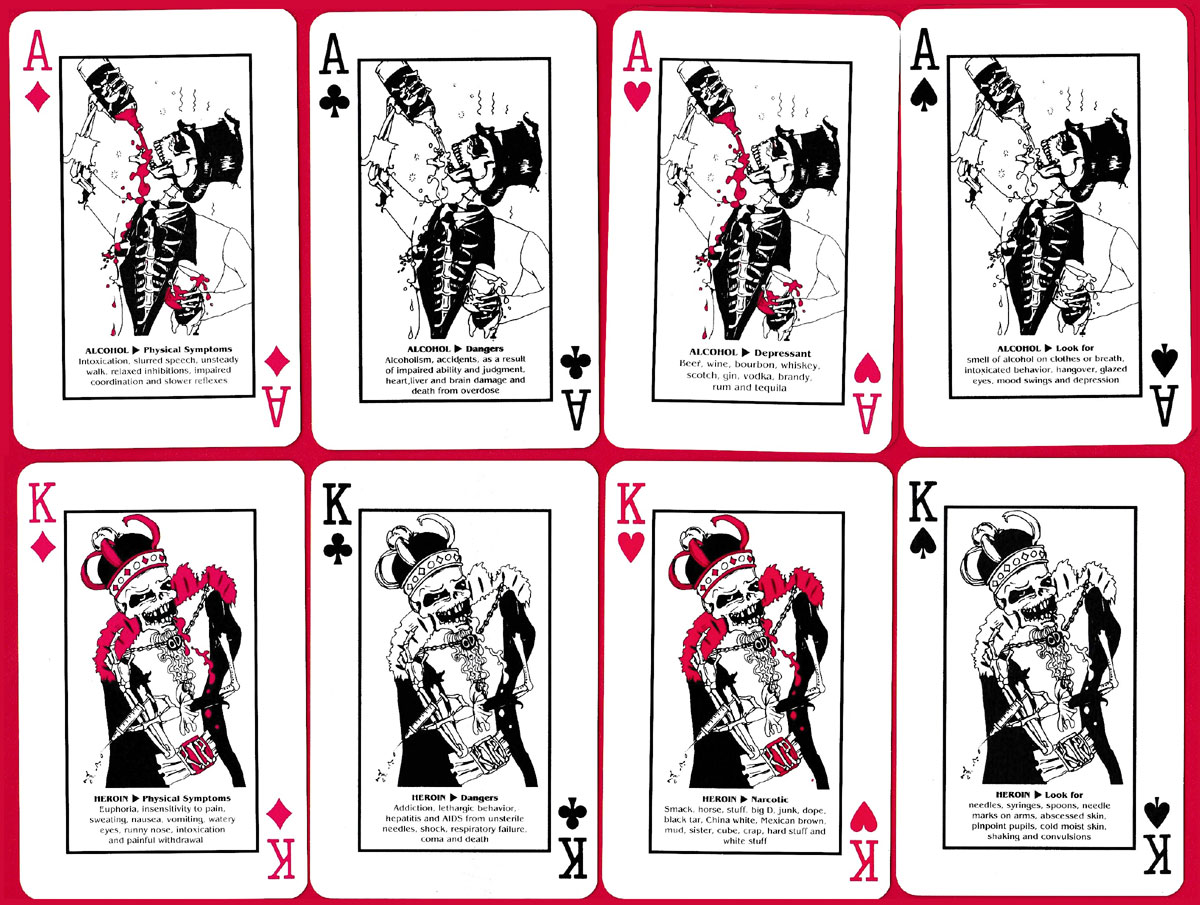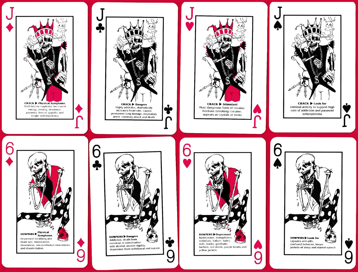 Above: Death on Drugs playing cards produced by Weedon Enterprises, United States, 1985.