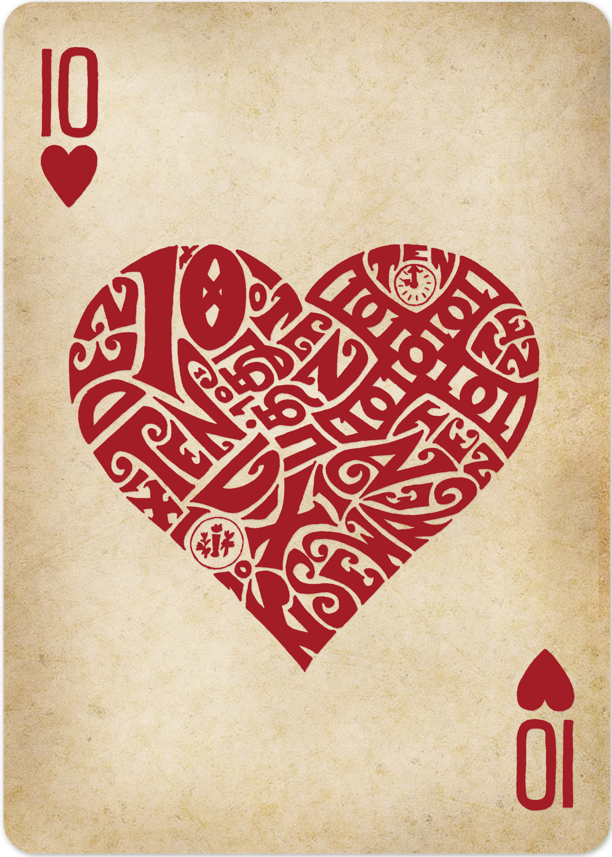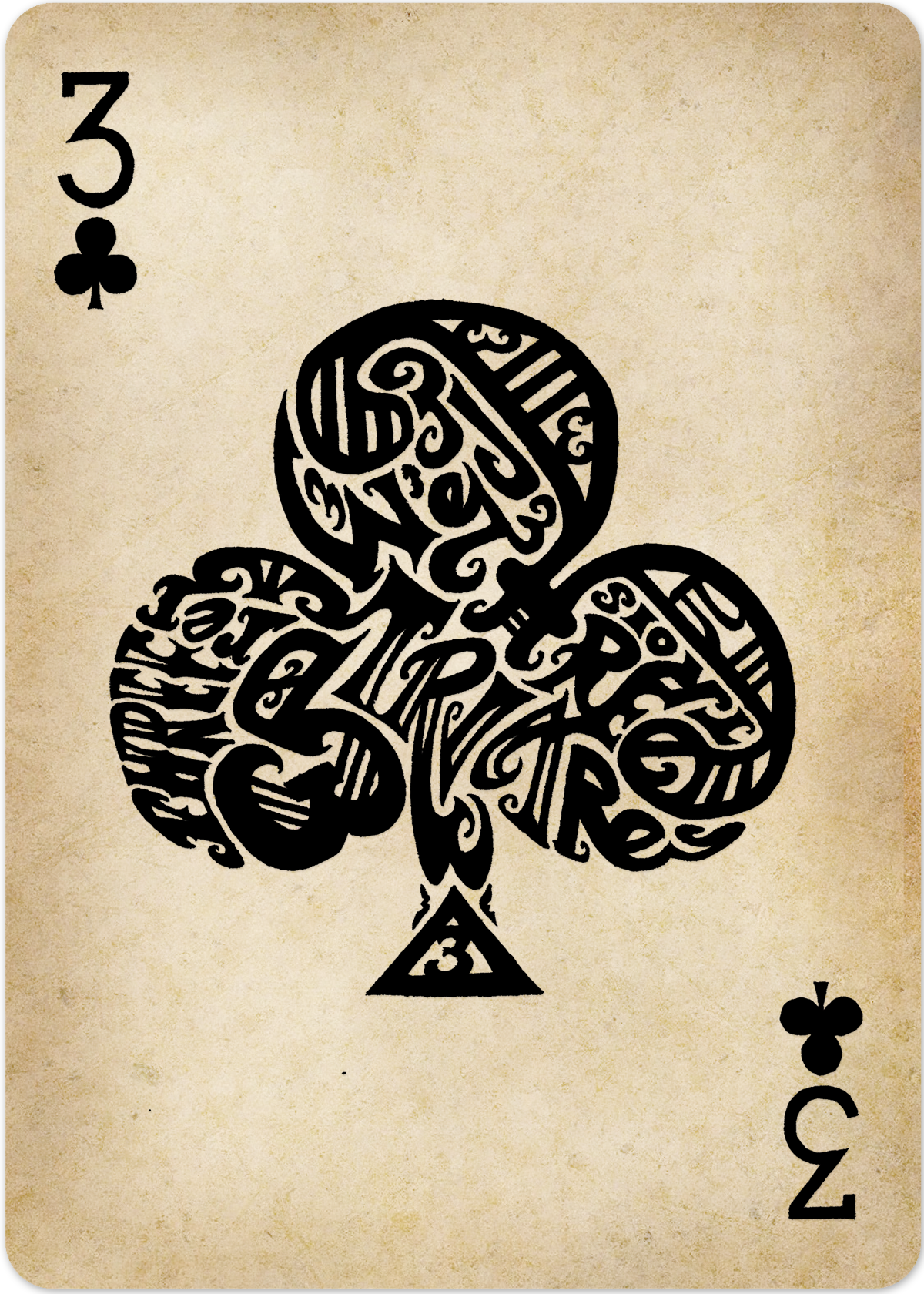 Each card has been individually designed, containing hidden symbols and interesting typographical flourishes.