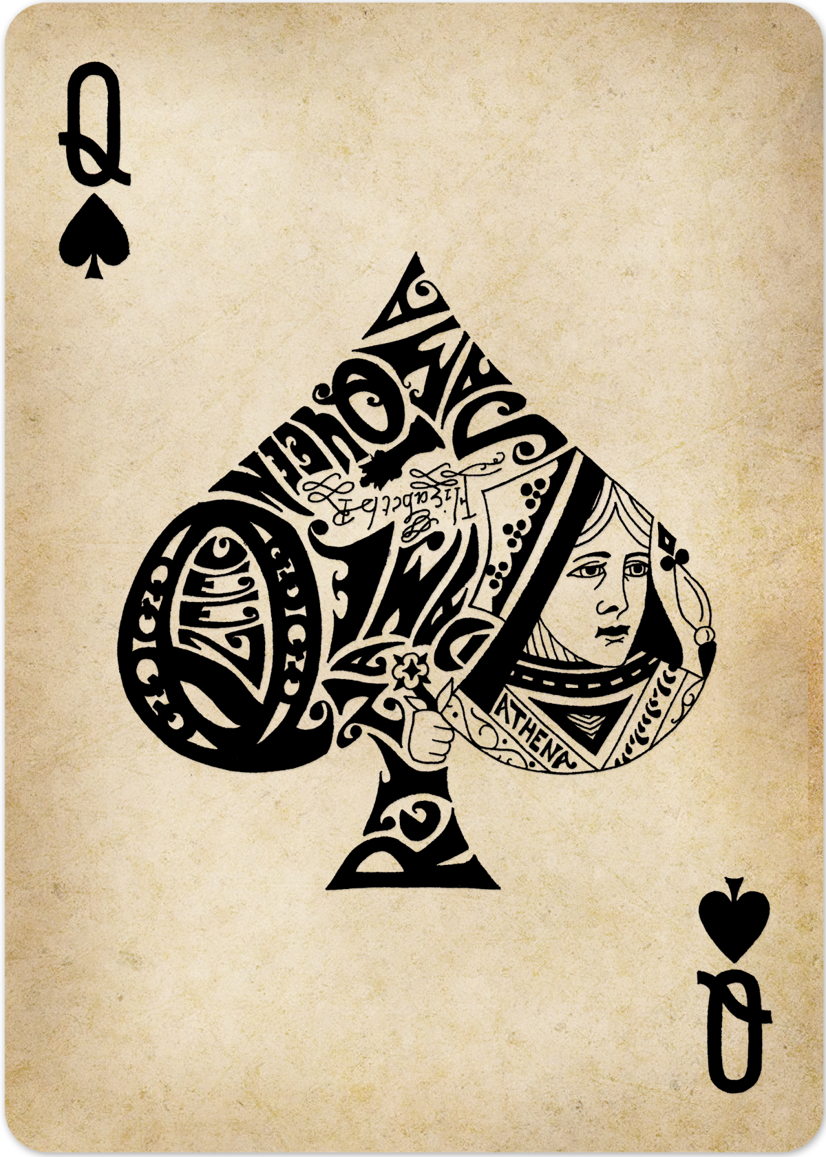 This pack created by Brian Daniel South, director of Teach by Magic, has a unique concept where instead of the usual ace of spades the card is a "spade of aces"; meaning that the spade is made up of aces using a typographic and illustrative style.