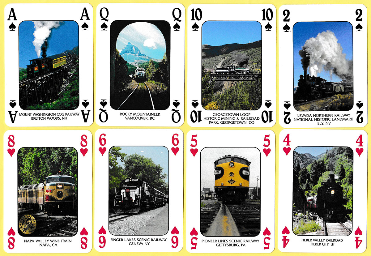 Above: Discover trains of North America playing cards printed by Cartamundi USA and published by Sea to Sky Photography.