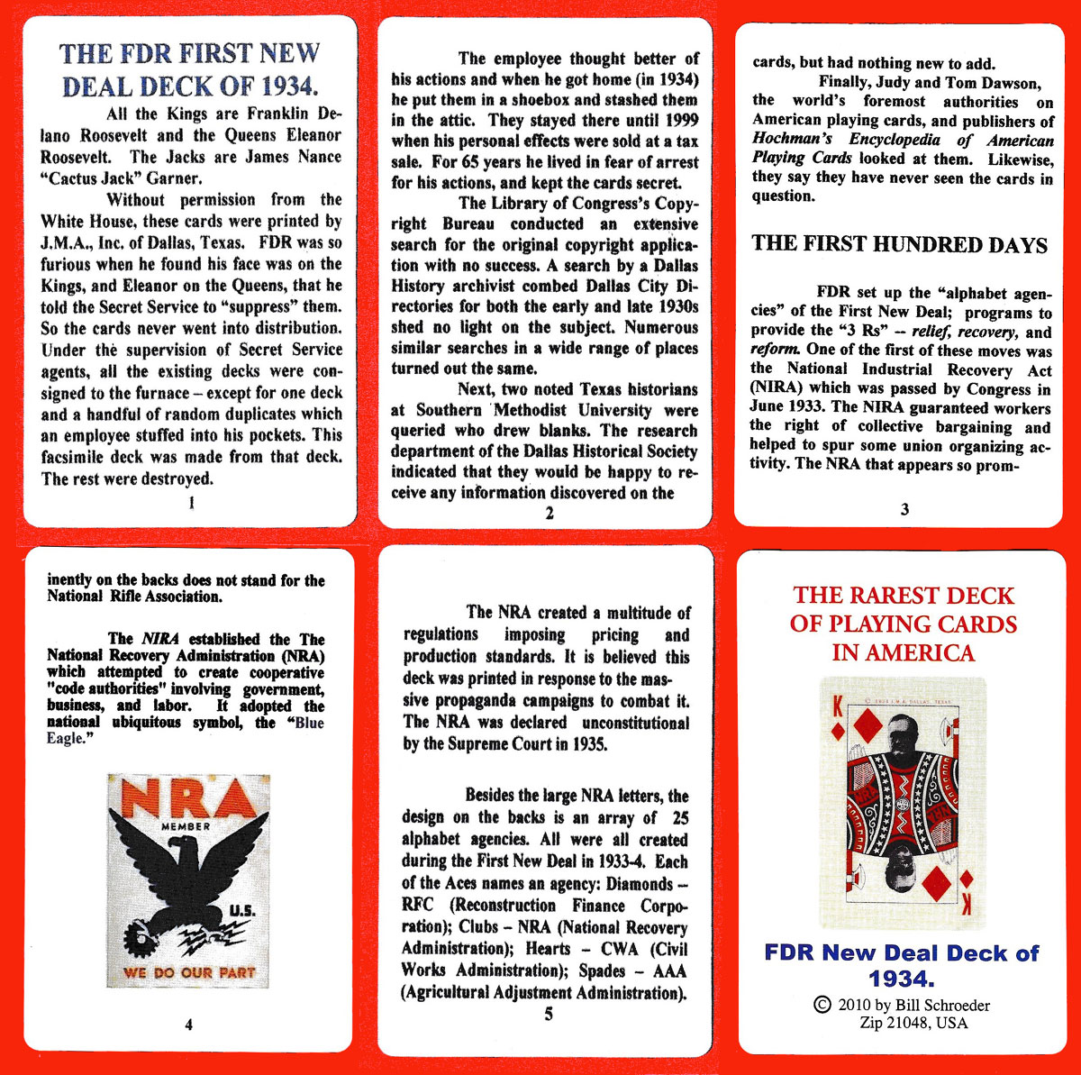 Facsimile of ‘FDR New Deal Deck’ of 1934 re-published by Bill Schroeder, USA, 2010.