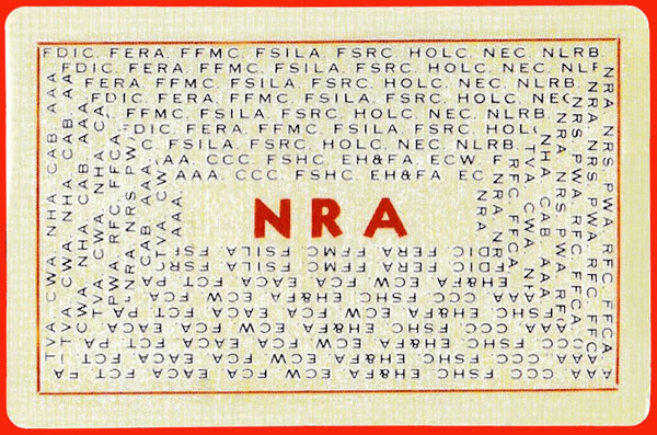 The back of the cards shows the initials of the numerous agencies created during Roosevelt’s mandate in the so-called New Deal, in the centre of which is the NRA (National Recovery Administration).