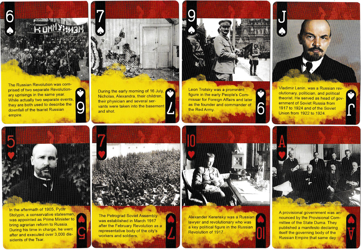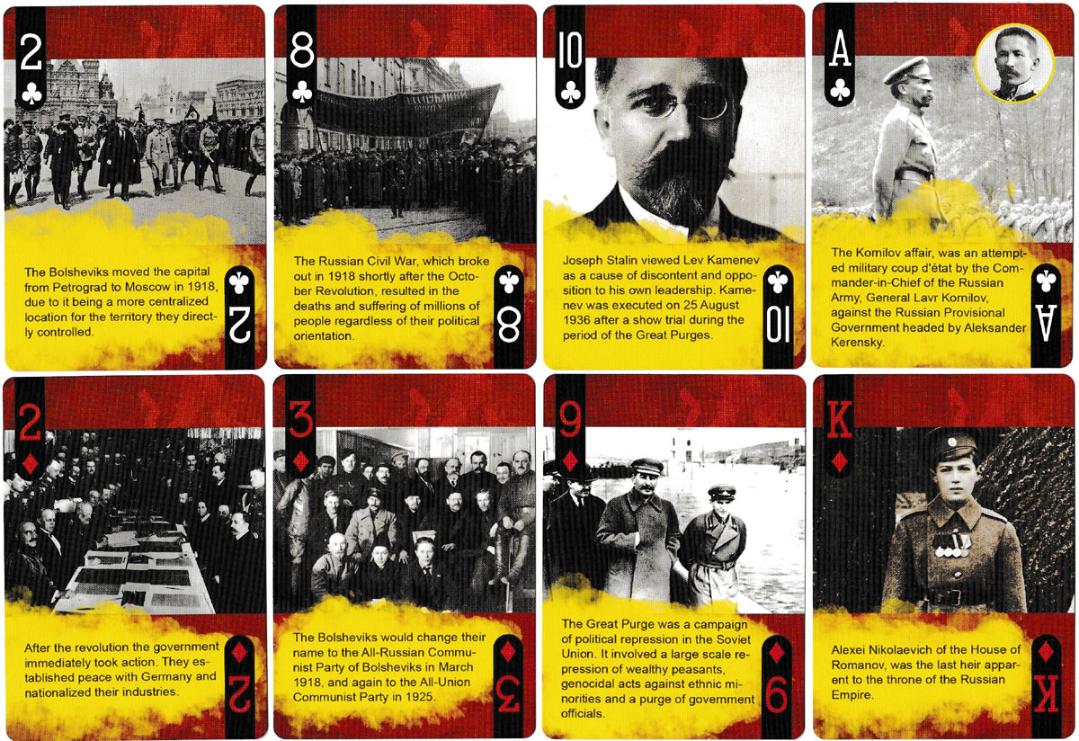 Above: History of the Russian Revolution playing cards produced by the Barclay Mountain Co., Pennsylvania, USA, 2021.