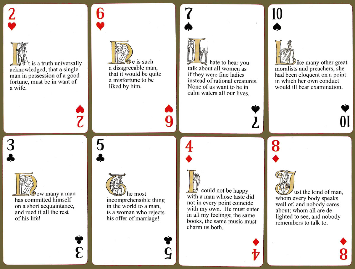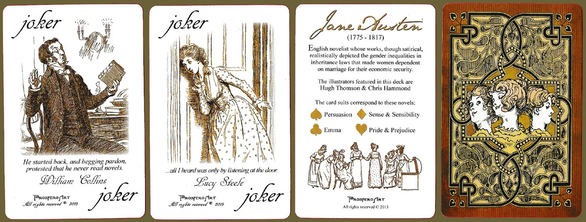 Jane Austen playing cards published by Prospero Art, USA, 2013.
