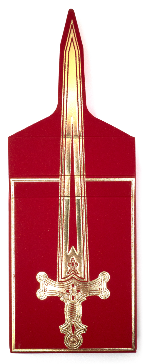 Above: The box features Excalibur, the legendary sword of King Arthur, which folds into the tuck flap.
