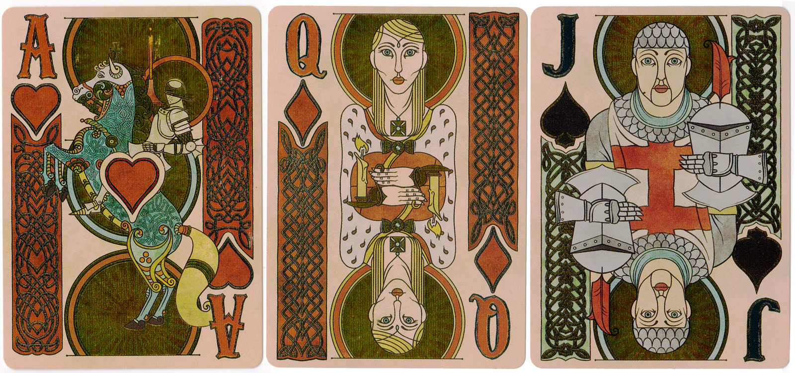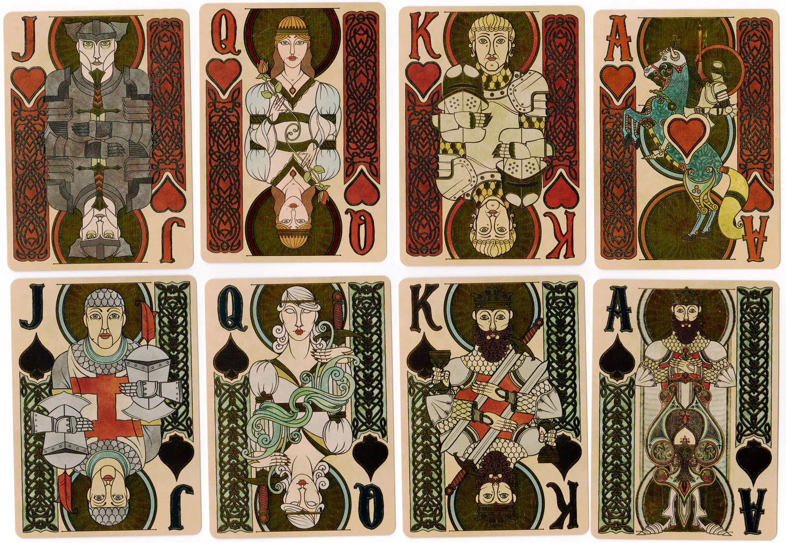 Above: Sir Lancelot on the ace of hearts, Lady Igraine as the queen of diamonds and Sir Galahad as the jack of spades.