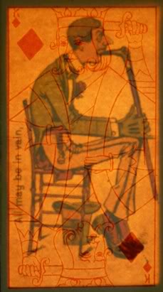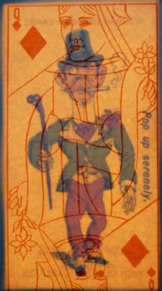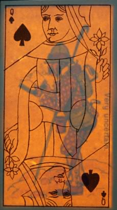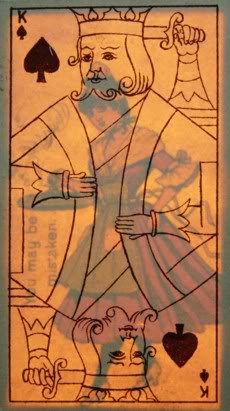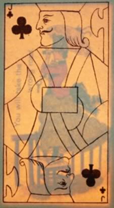 Kinney Brothers Transparent Playing Cards were first issued in c.1890. While the card faces show simplified standard court outlines in monochrome (the same in each suit), hidden humorous or glamorous images can be seen in colour when the cards are held to the light. A fortune prediction was also printed alongside. There were several issues, the first of which contained 52 cards. No joker has ever been seen despite a 53 card variant mentioned on the backs. Tobacco insert cards were widely used to encourage repeat sales to smokers trying to complete sets.