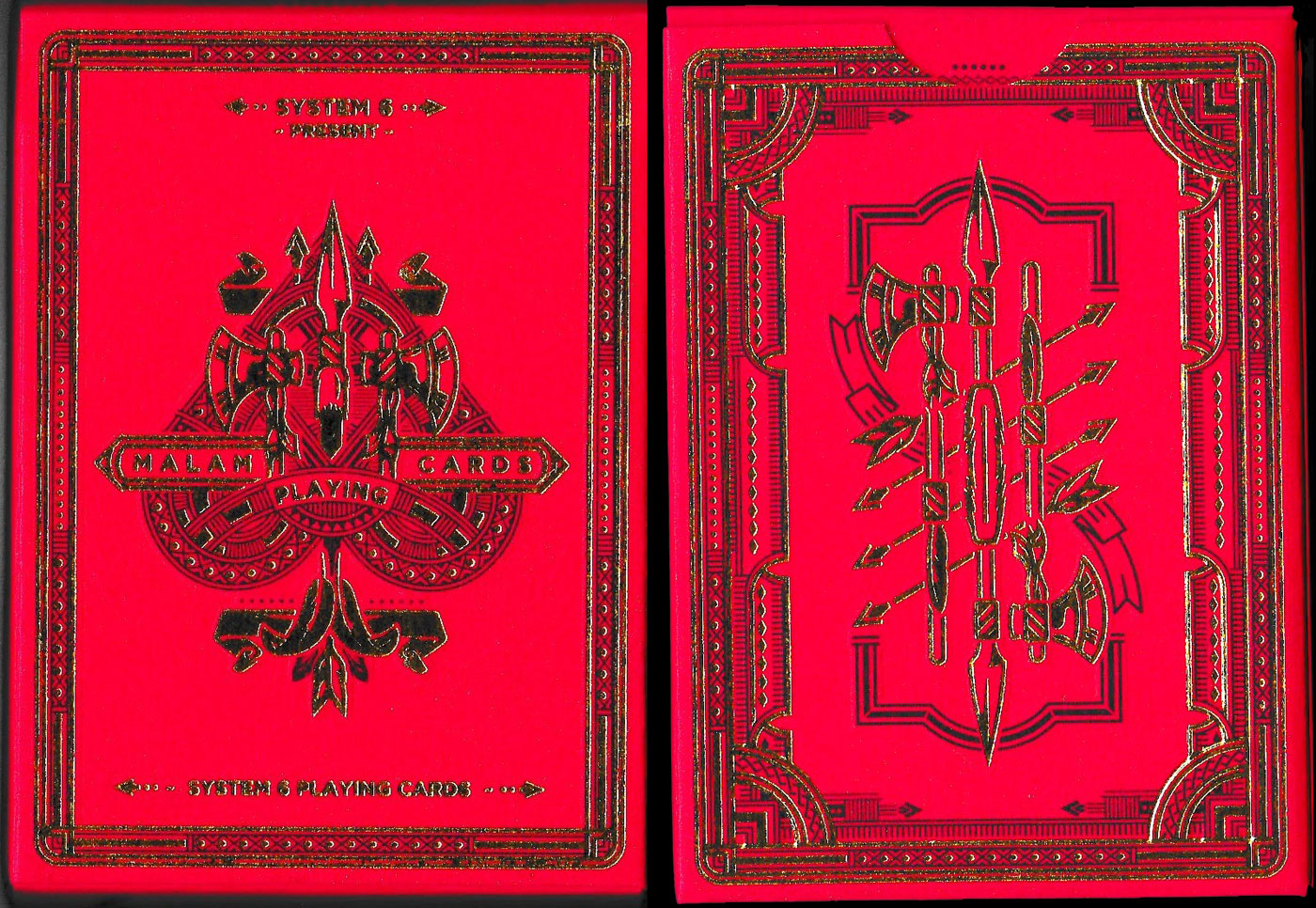 Following a successful Kickstarter campaign, this pack was published in 2015 by System 6 Playing Cards, and printed by the Expert Playing Card Company, New York. The creator, Michael Muldoon, explained in the original campaign that “the Chumash people often played two styles of games, one involving chance, and the other skill… Each village had a special area in which these games were played, they called it Malamtepupi. With this in mind we have shortened the name to Malam”.