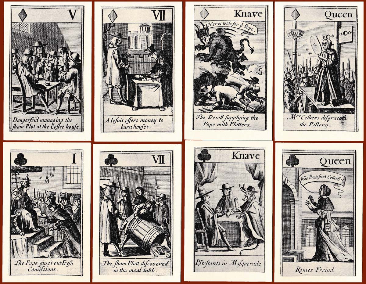 Meal Tub Plot playing cards [facsimile] with 17th century sketches by Francis Barlow.