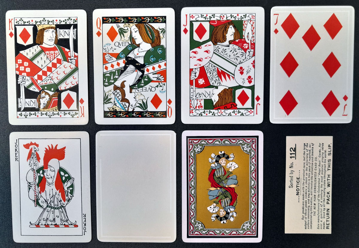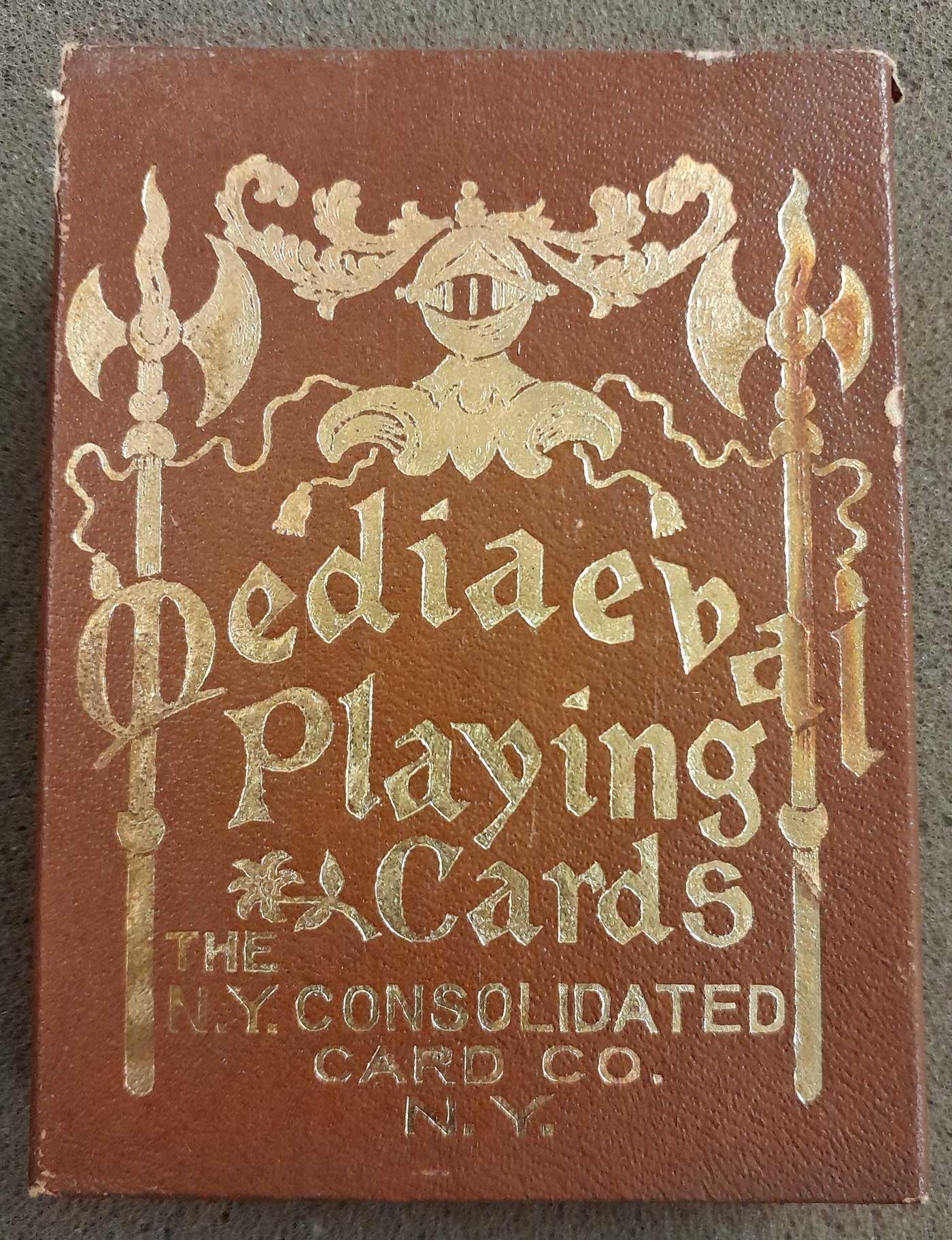 Above: Mediaeval Playing Cards made by the New York Consolidated Card Company, New York, USA, 1897. 52 cards + 1 Joker + 1 blank card in telescopic box. Size: 63 x 88 mm. Photos courtesy of the Worshipful Company of Makers of Playing Cards.