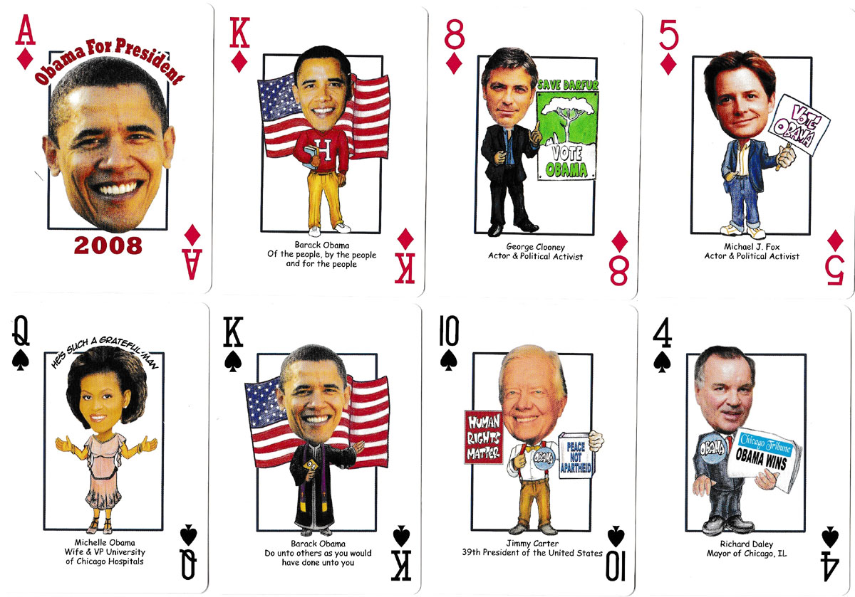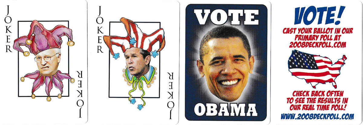 Above: Obama Presidential playing cards by Parody Productions LLC of Cincinnati, Ohio, 2007.