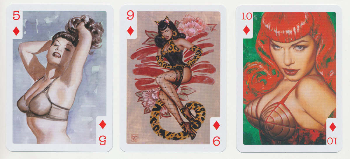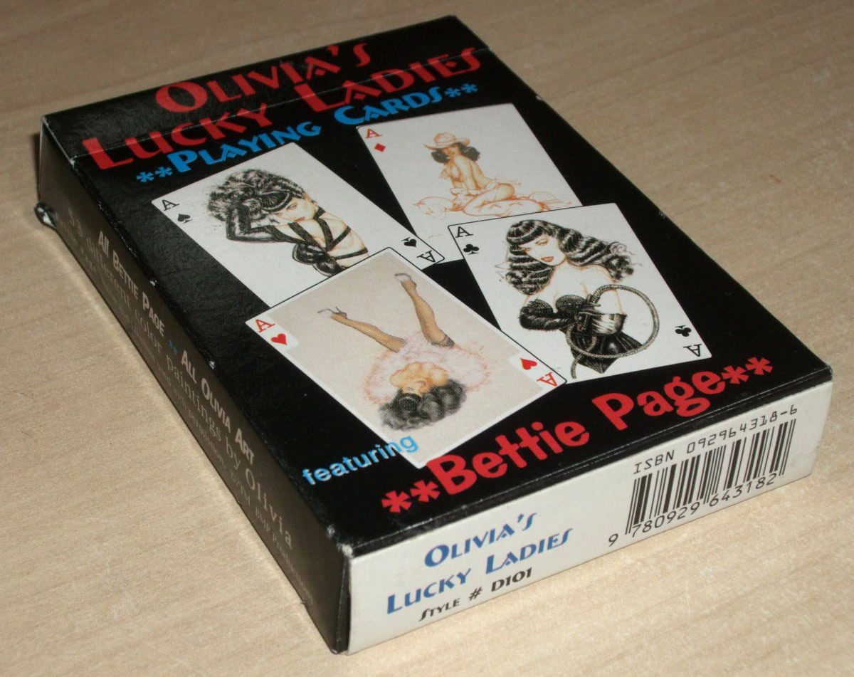 Olivia’s Lucky Ladies feature 53 different fine art paintings of the glamour model Bettie Page reproduced in a standard poker deck format. Erotic, but not explicit, these are tasteful and yet stirring images showcasing some fine artistic ability from the painter known as 'Olivia' (Olivia De Berardinis):
