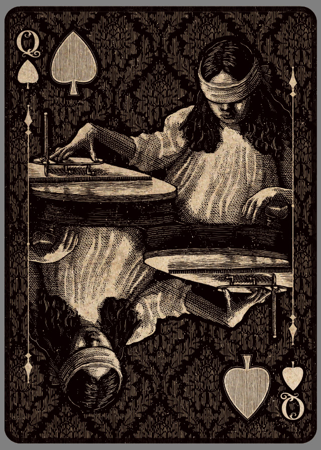 Bicycle Ancient Machine playing cards designed by concept artist Juniardi Satyanagara, USA, 2015.