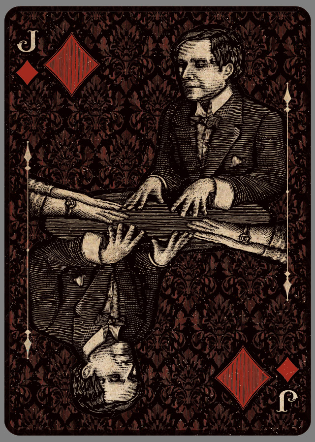 I started working on Oracle because I got interested in the spiritualist movement from the turn of the past century, and it seemed like it was an area no one had really done much with for playing cards. That actually surprised me, because it seemed to have a natural fit with magic and showmanship - as that's mostly what the movement was as far as I can tell. I don't want to wade into the territory of peoples beliefs, but there was a lot of "showmanship" going on and that seemed like a unique theme to base a project on.