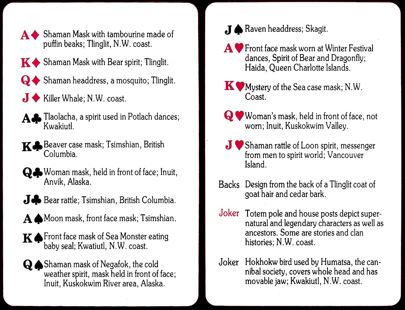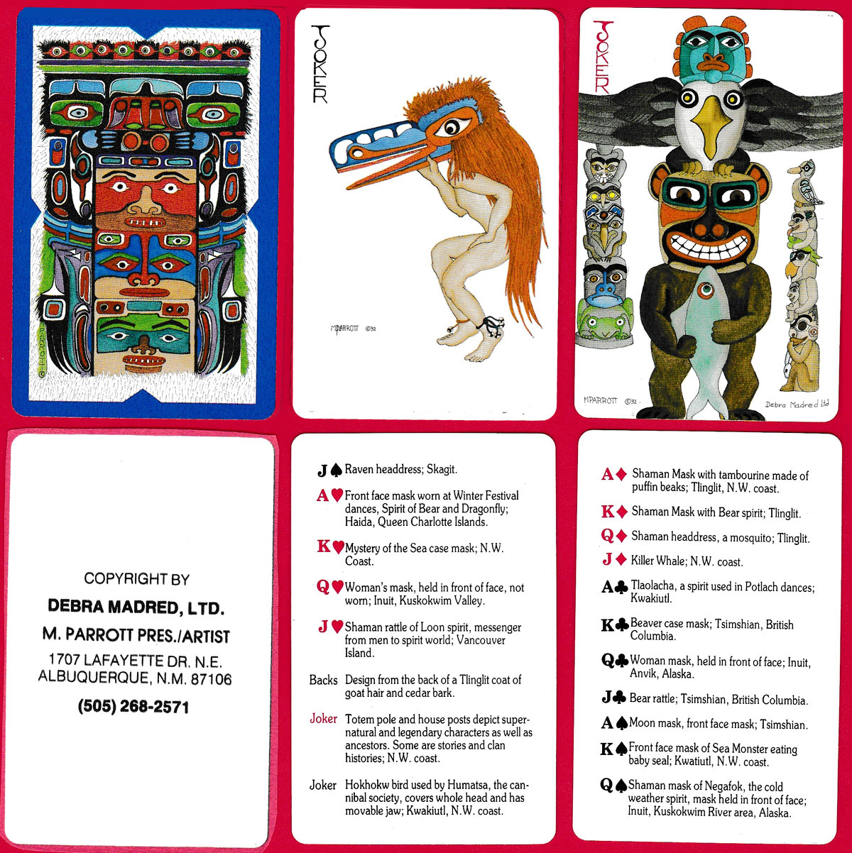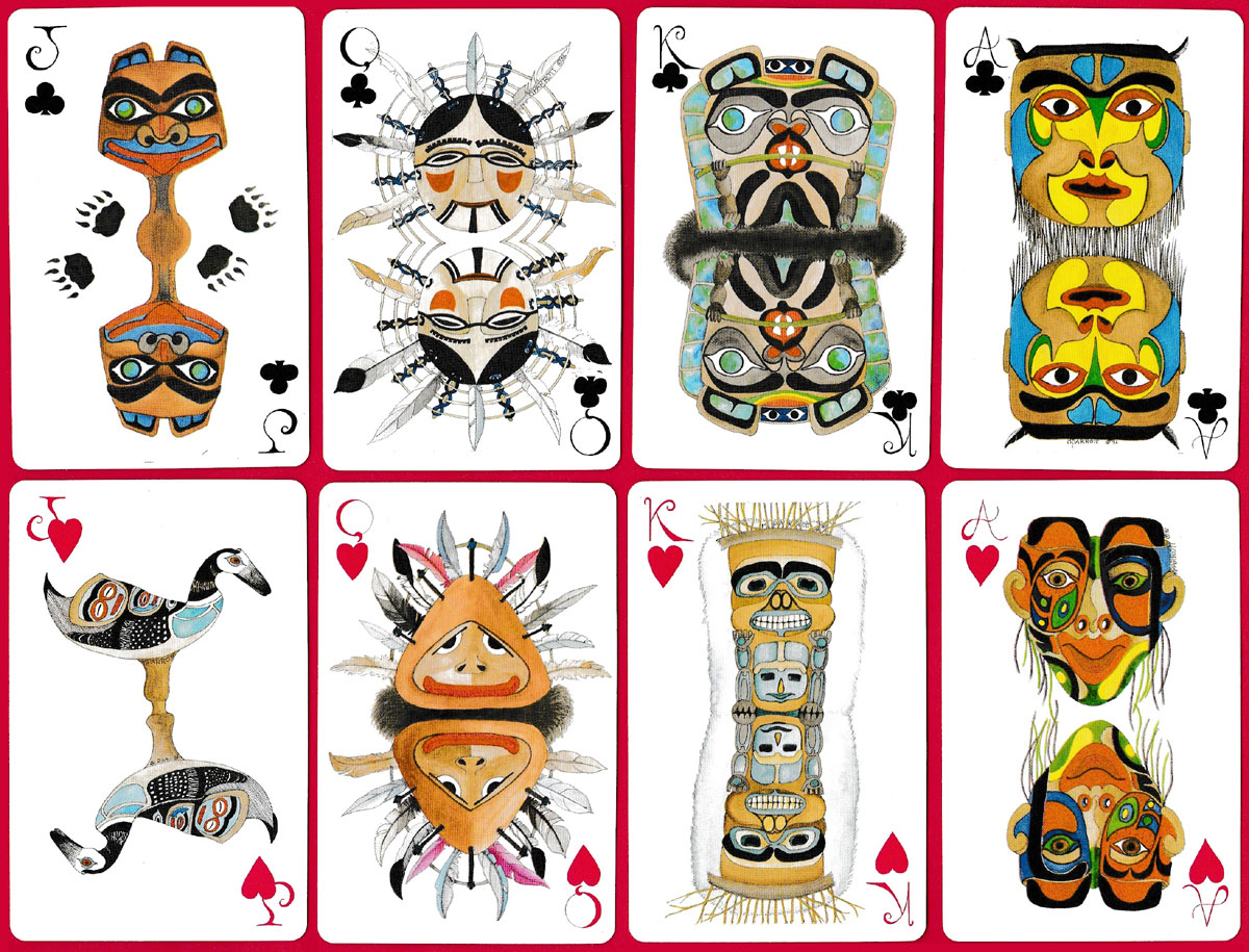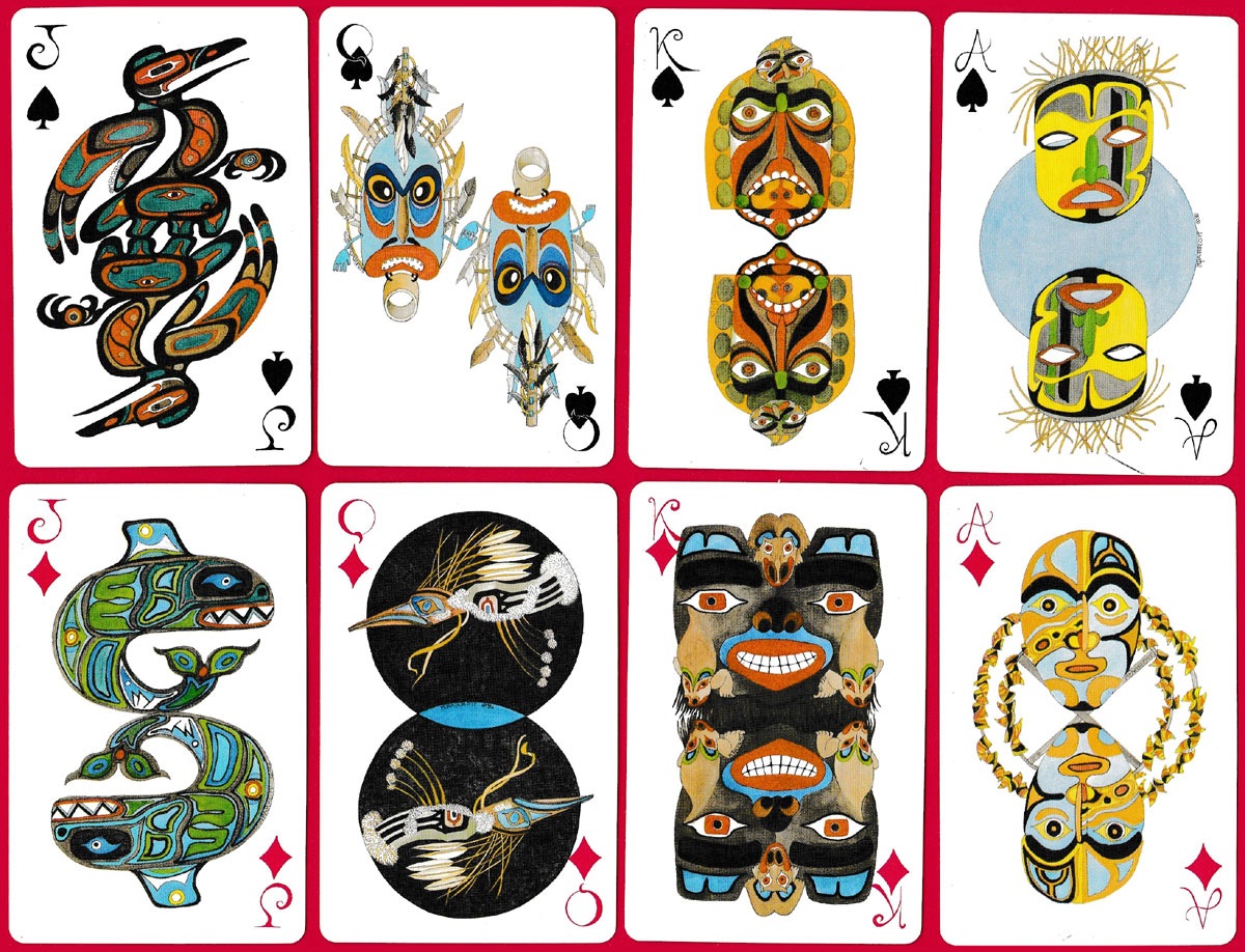 Above: Pacific Northwest native Indian masks playing cards created by Margaret Parrott and produced by Debra Madred Ltd, 1992.