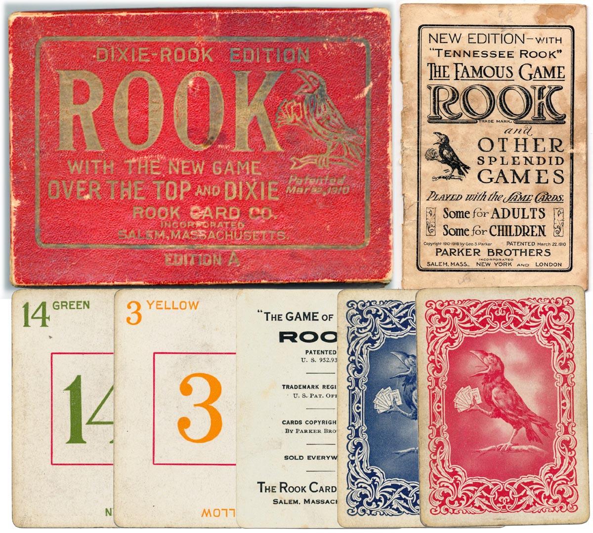 Above: “Rook” was patented in 1910 by George S. Parker [see patent registration]. The rule book carries copyright dates of 1910, 1916 and 1919. Image courtesy Matt Probert.