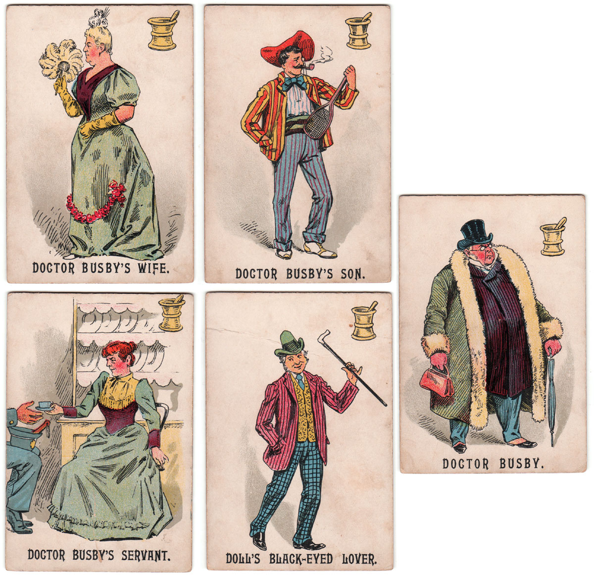 The Game of “Doctor Busby” published by Parker Brothers, Salem, Massachusetts, USA, c.1890. “Dr Busby” is a matching game in which players in turn request cards from the person to their right, trying to complete a set, or ‘family’. The winner is the player who obtains all the complete sets. See the Rules►