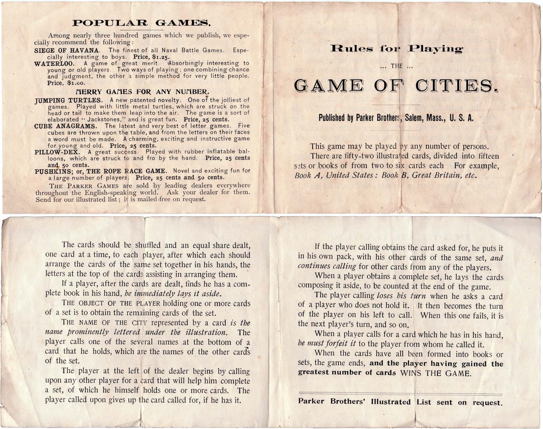 The Game of Cities, © 1898 Parker Brothers.