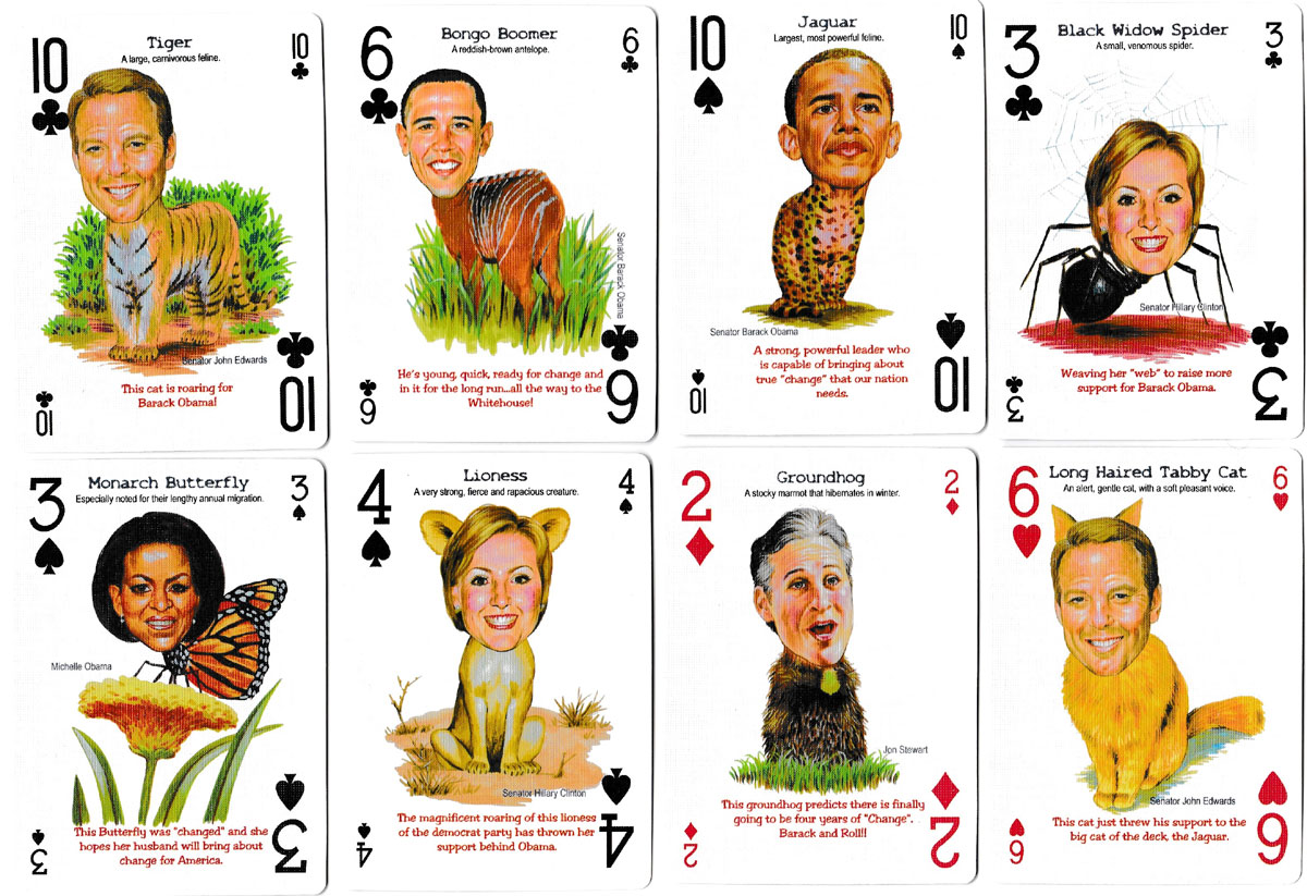 Above: Politically WILD Barack Obama playing cards published by Newt’s Playing Cards, Ohio, 2008.