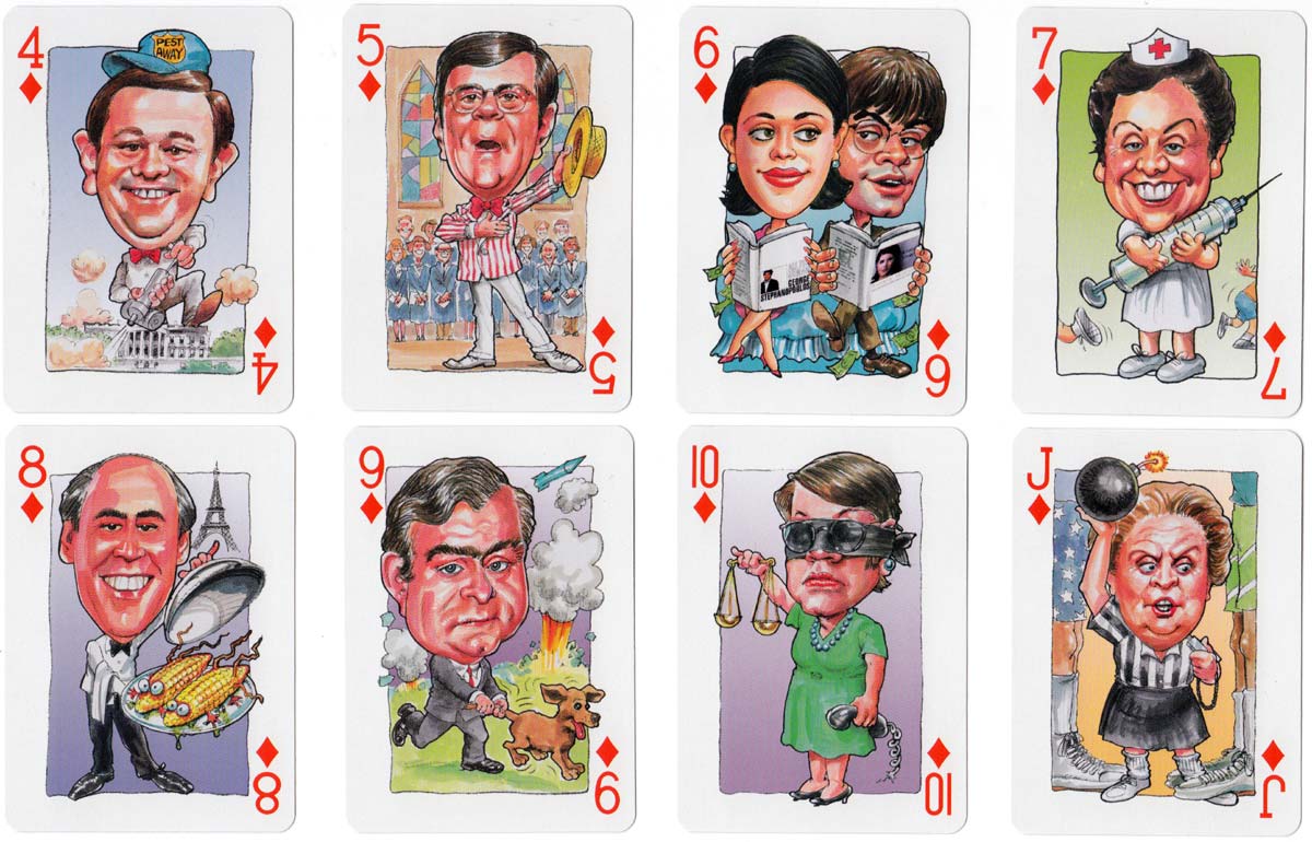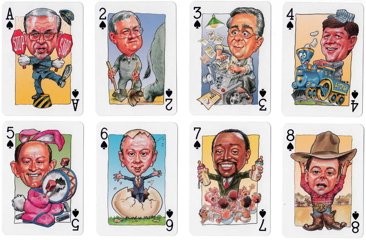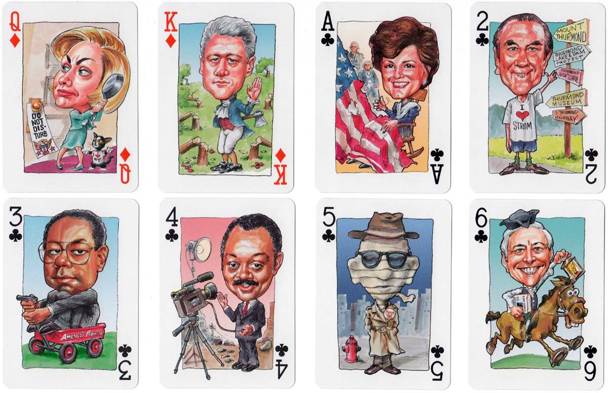 Politicards ’96 with satirical caricatures on every card by Peter Green, USA.