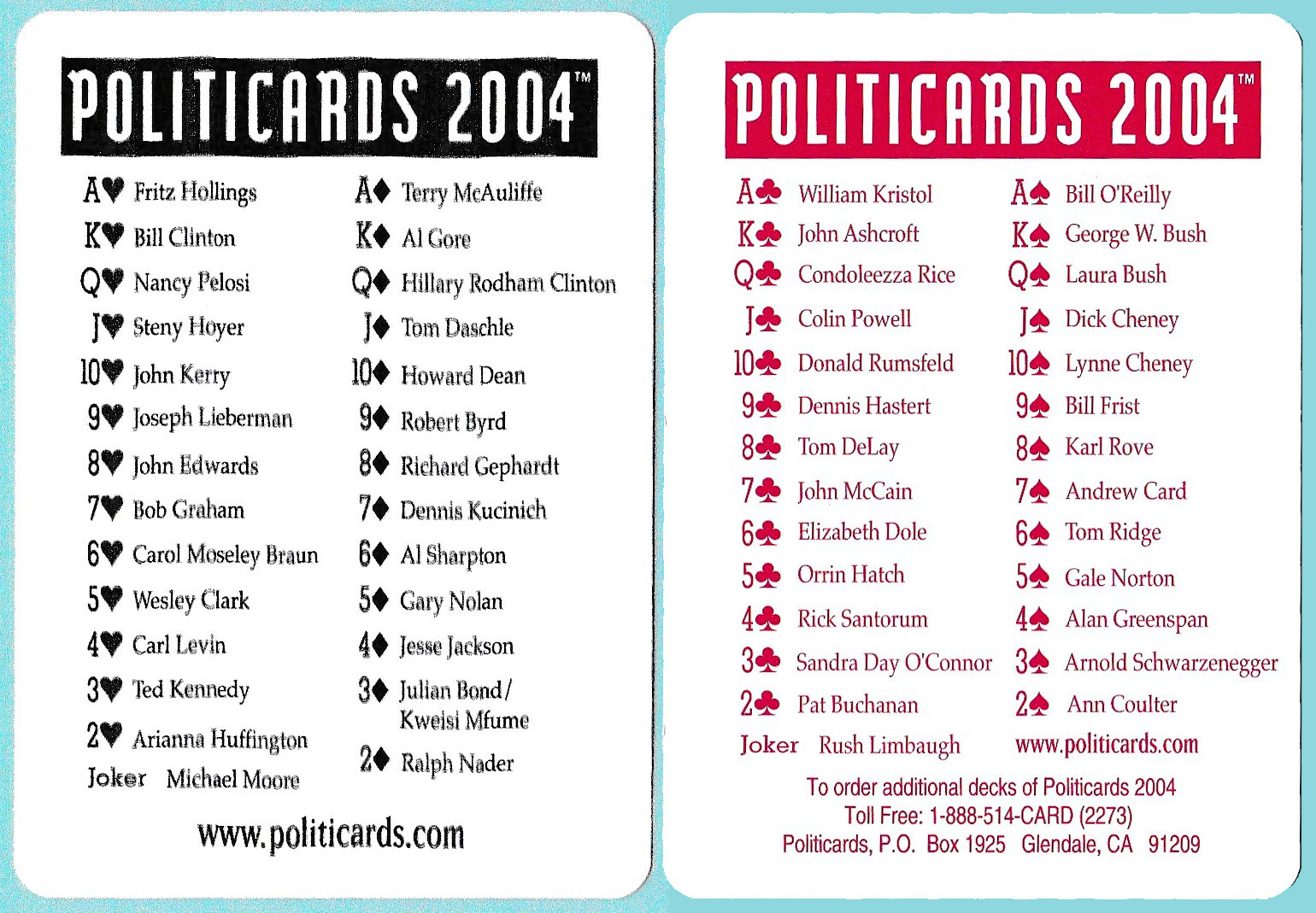 “W Deck” playing cards poking fun at President Bush, USA, 2004.