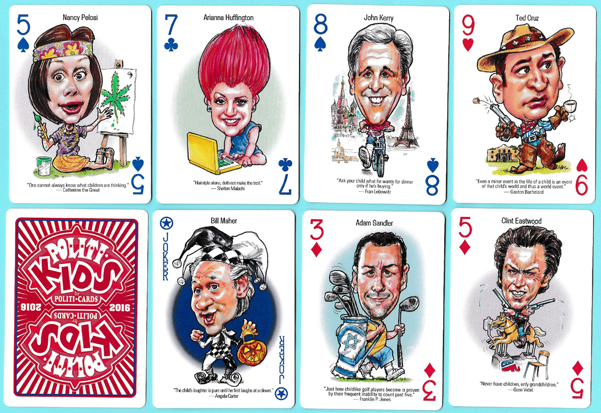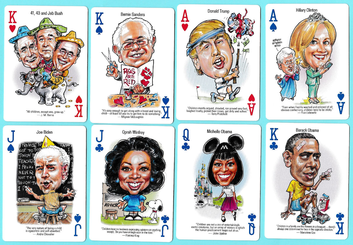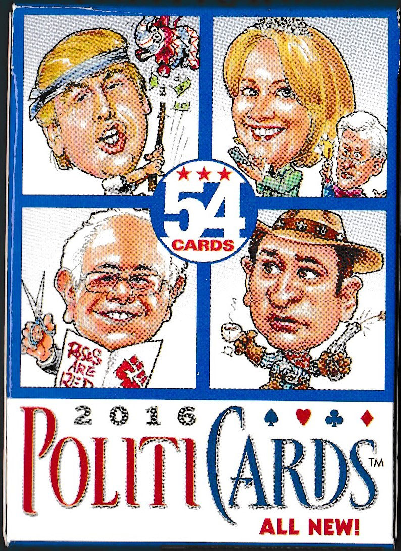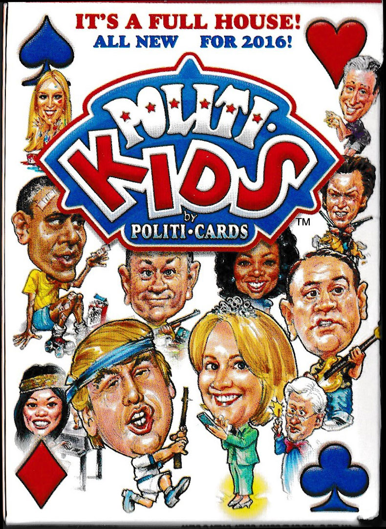 Politicards™ 2016 & Politikids 2016: twin decks of satirical playing cards produced by Peter Green for the 2016 presidential election.