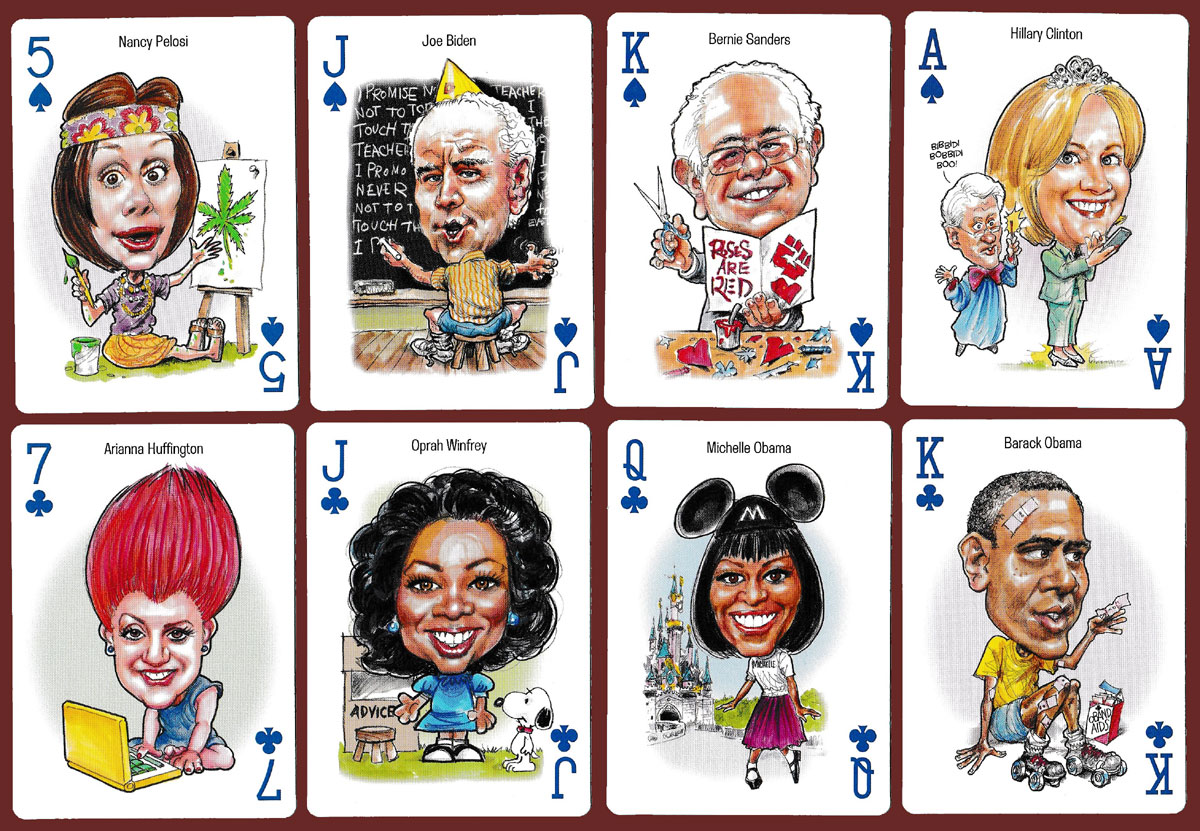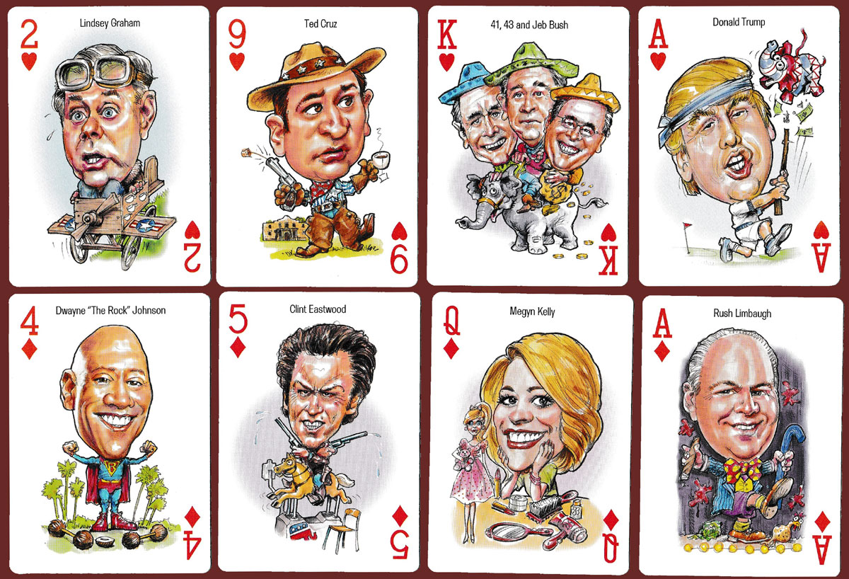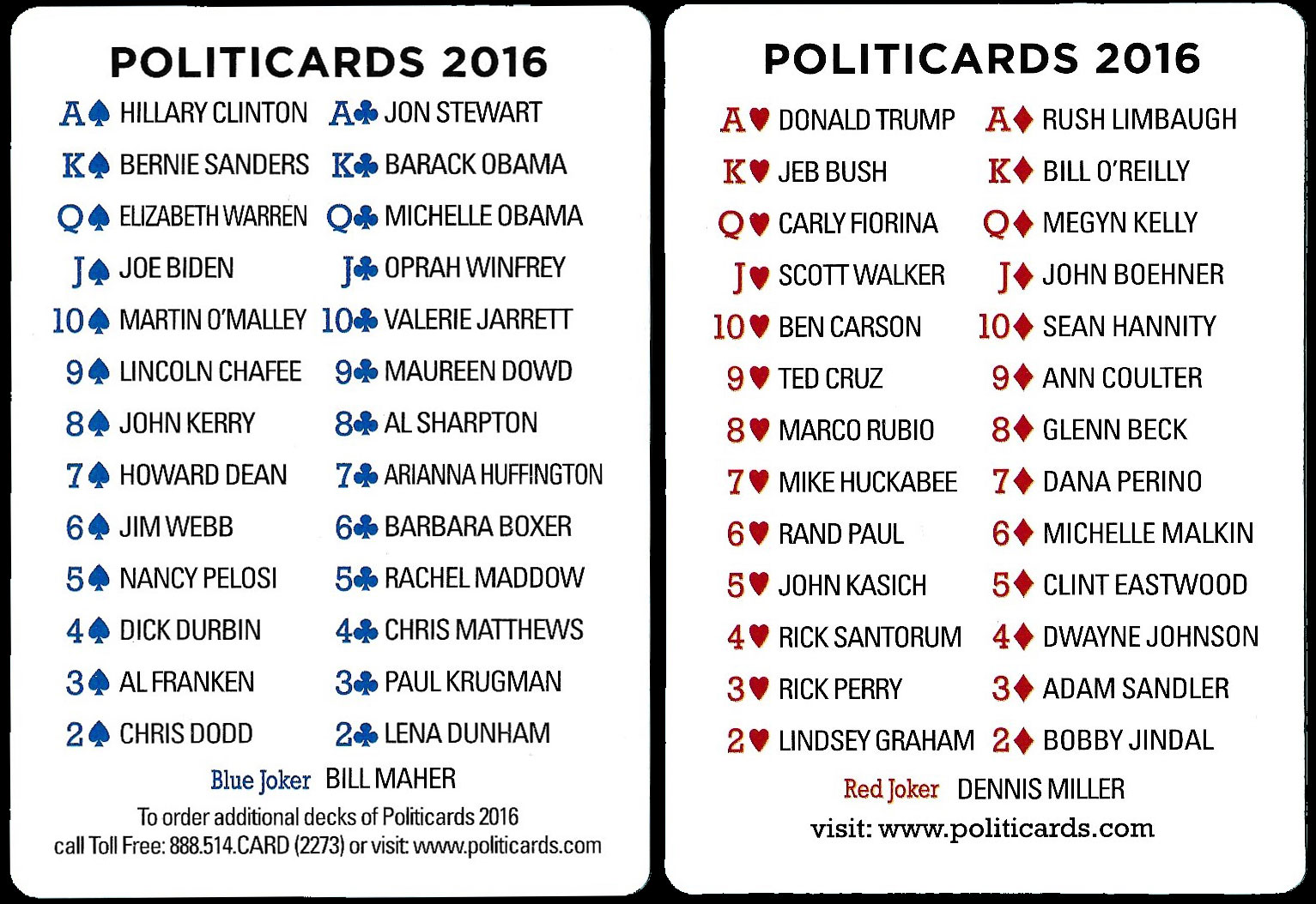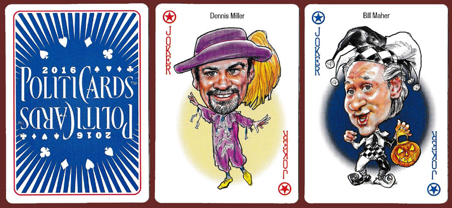Politicards™ 2016 & Politikids 2016: twin decks of satirical playing cards produced by Peter Green for the 2016 presidential election.