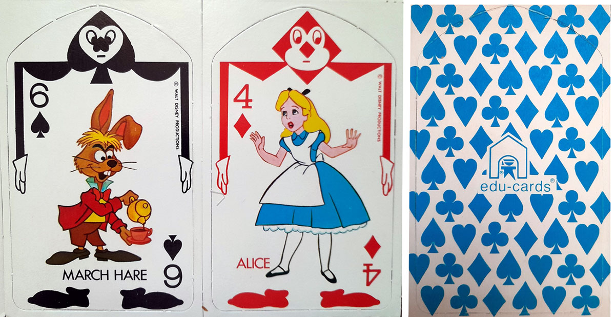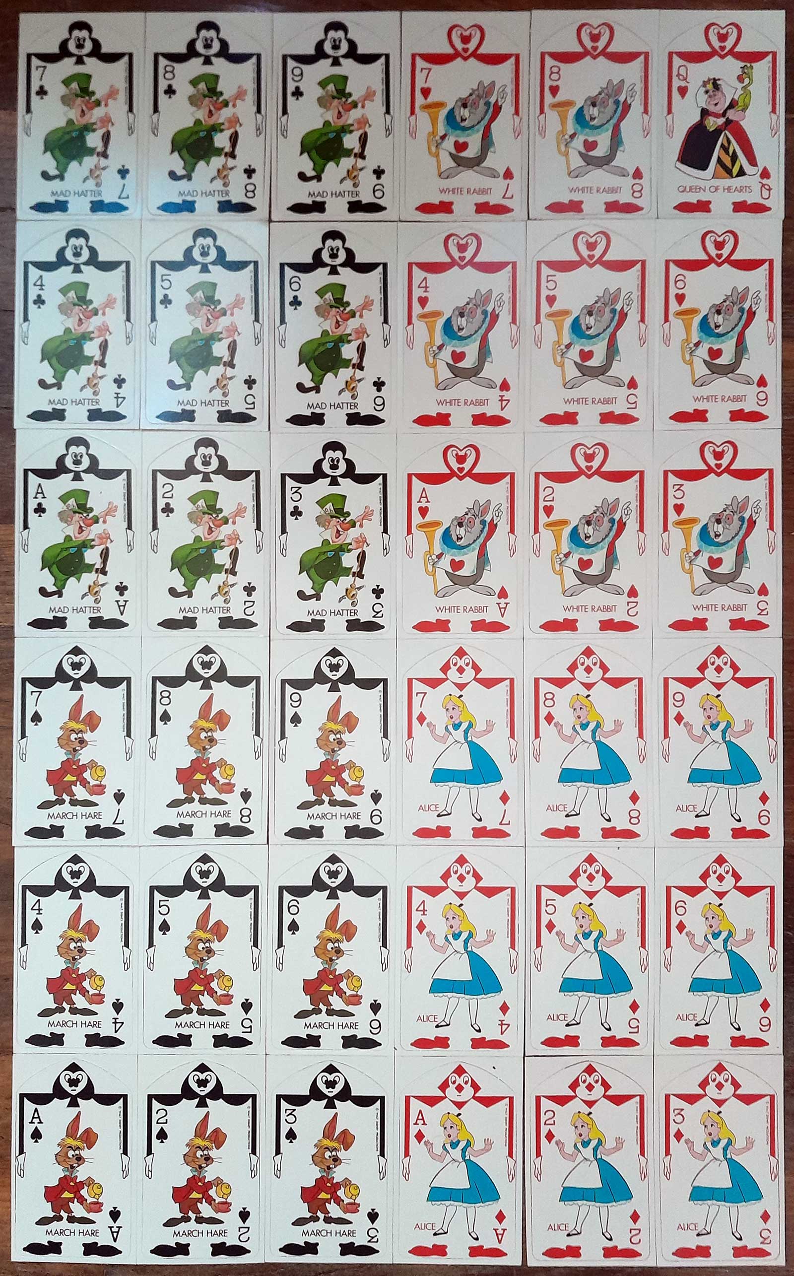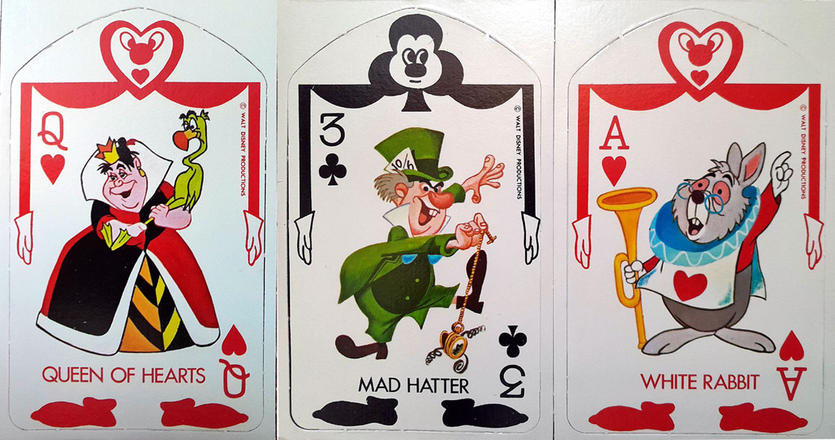 Alice in Wonderland card game featuring Disney characters on king-size cards.
