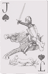 Renaissance Playing Cards, showing 54 different drawings spanning the years 1066 to 1400. Included is the Idiotic Fortune Telling guide, which is described as a "free worthless thing". Good Luck and no regrets are promised to the owner of these cards! Created by Maxim Hurwicz, 224 North 4th Street, Stillwater, Minnesota 55082 USA. www.maximpulse.com► These cards were originally drawn and sold without the guide, but folks kept asking me if they were fortune telling cards, and I'd have to say "No, they are merely beautifully illustrated cards". In order to save my breath, I wrote the fortune telling guide, which is truly idiotic, but some find it humorous (it sure made me laugh while I wrote it) The deck includes 52 cards + 2 Jokers + extra card + booklet guide in cello-wrapped box, made in India. |
