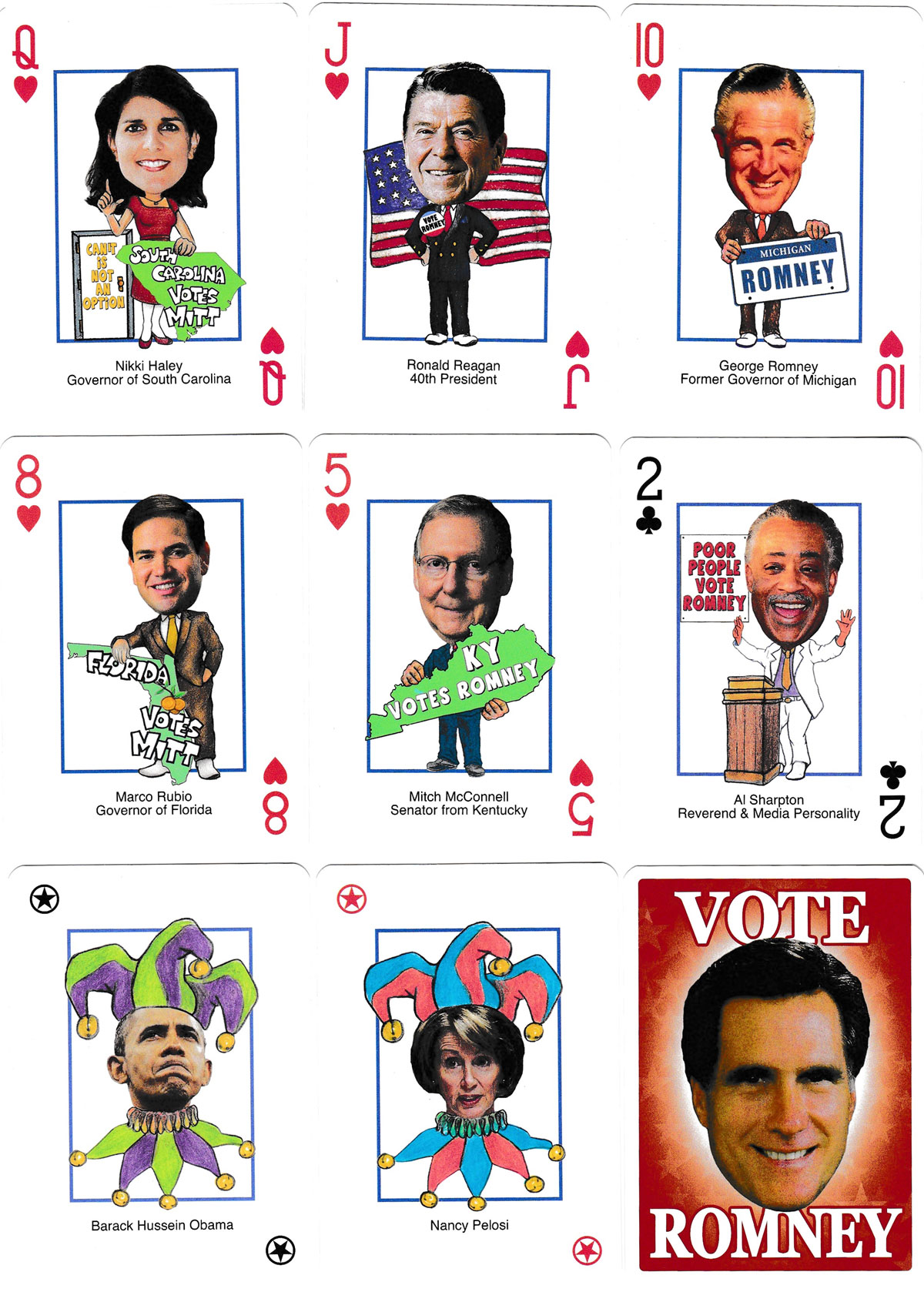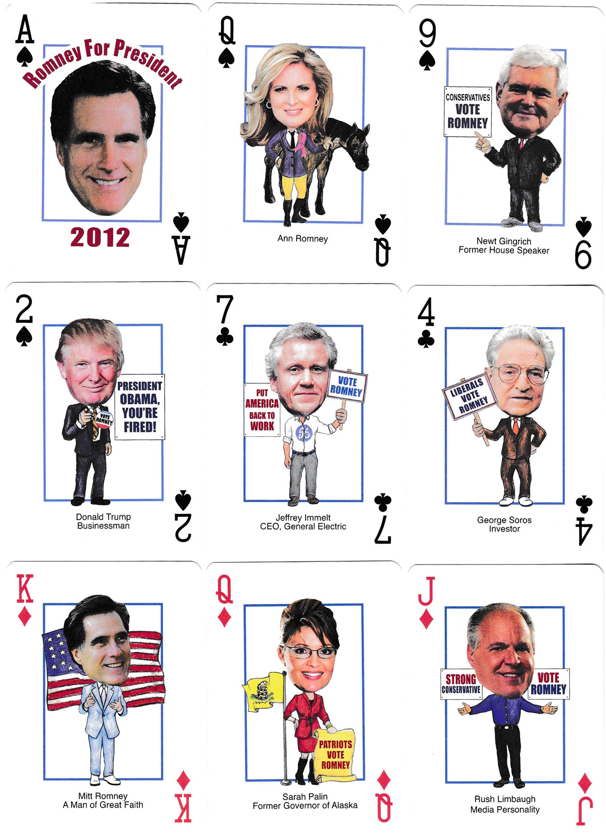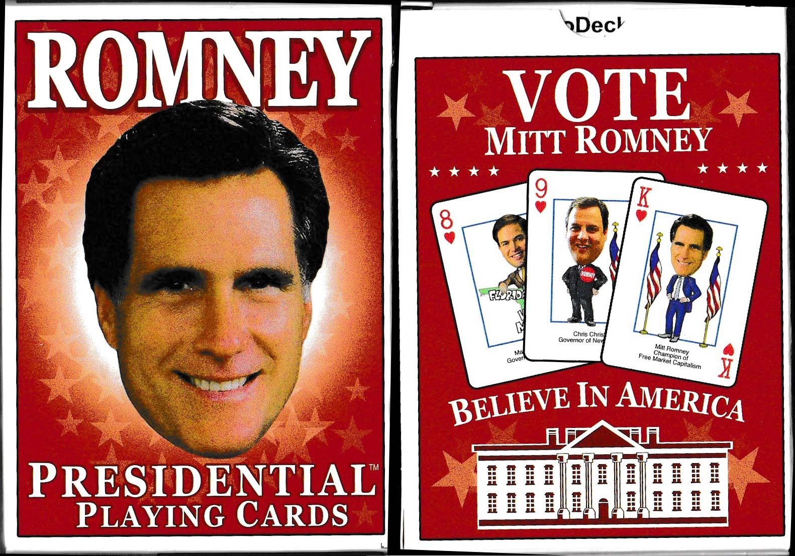 Above: Romney Presidential playing cards produced by Parody Productions LLC of Cincinnati, Ohio, USA, 2012.
