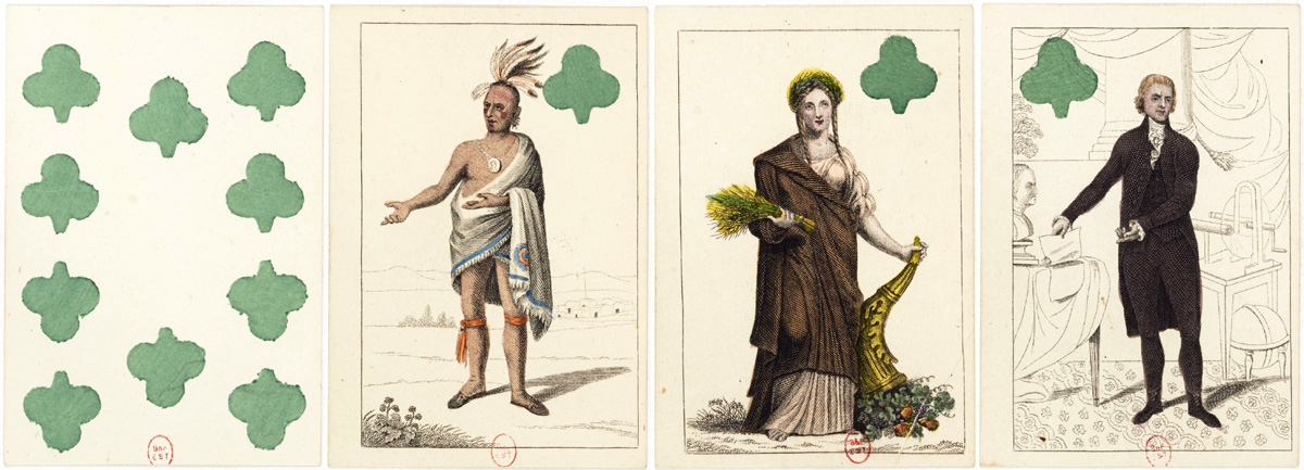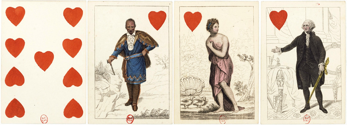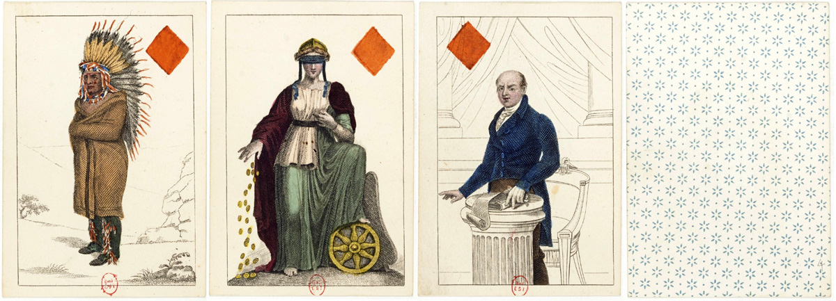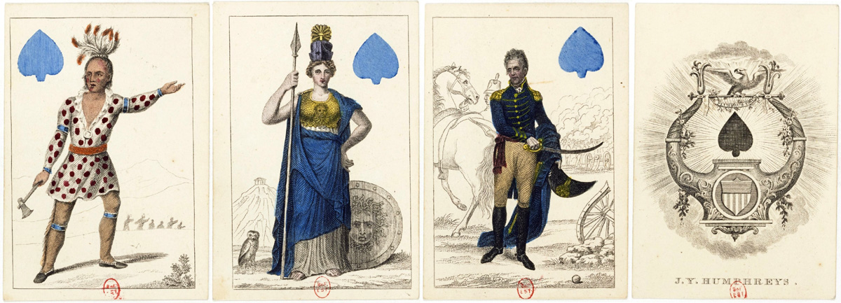Above: Seminole Wars deck by J. Y. Humphreys, Philadelphia, c.1819. Source gallica.bnf.fr / Bibliothèque nationale de France • Jeu de cartes américain dit des guerres séminoles►