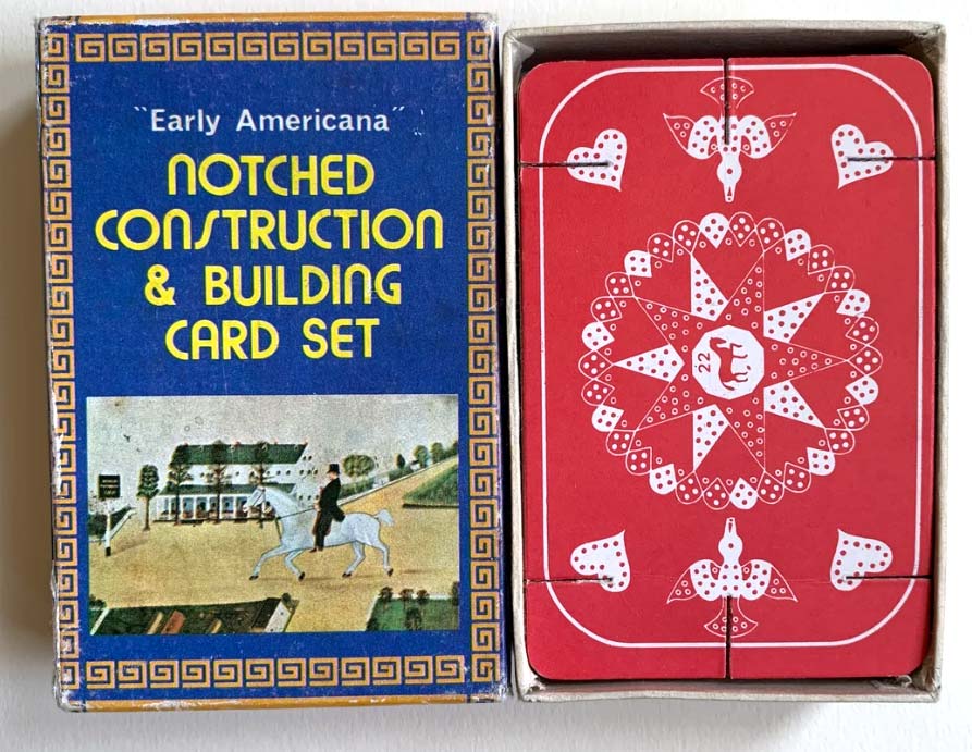 Above: Early Americana Notched Construction Card Set produced by Shackman & Co., 54 notched cards so that simple or complex constructions are possible, plus extra card. Also published by Merrimack Publishing Co. with different box & backs, printed in Hong Kong, c.1960s or 70s.