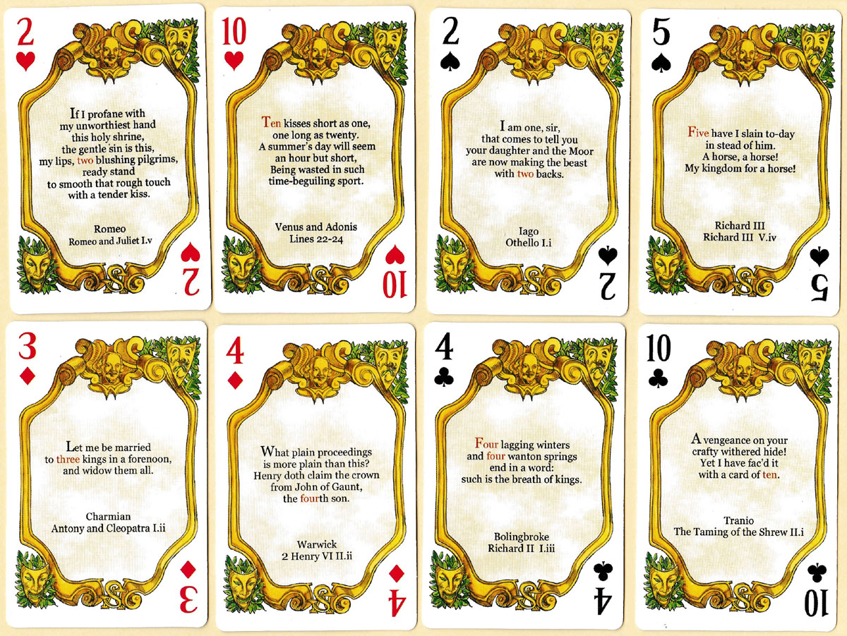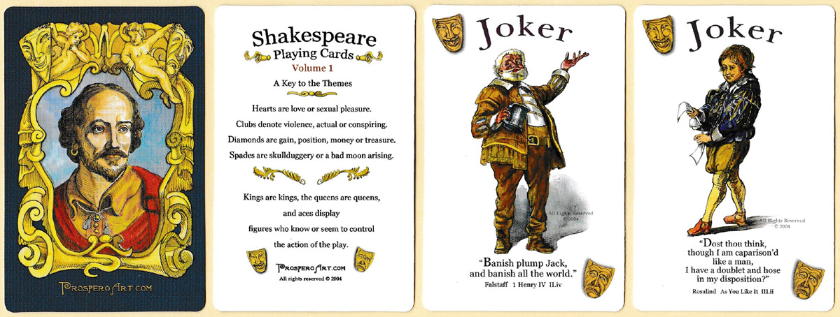 Shakespeare playing cards: Quotes, the first volume of a double set published by Prospero Art of San Francisco, 2004.