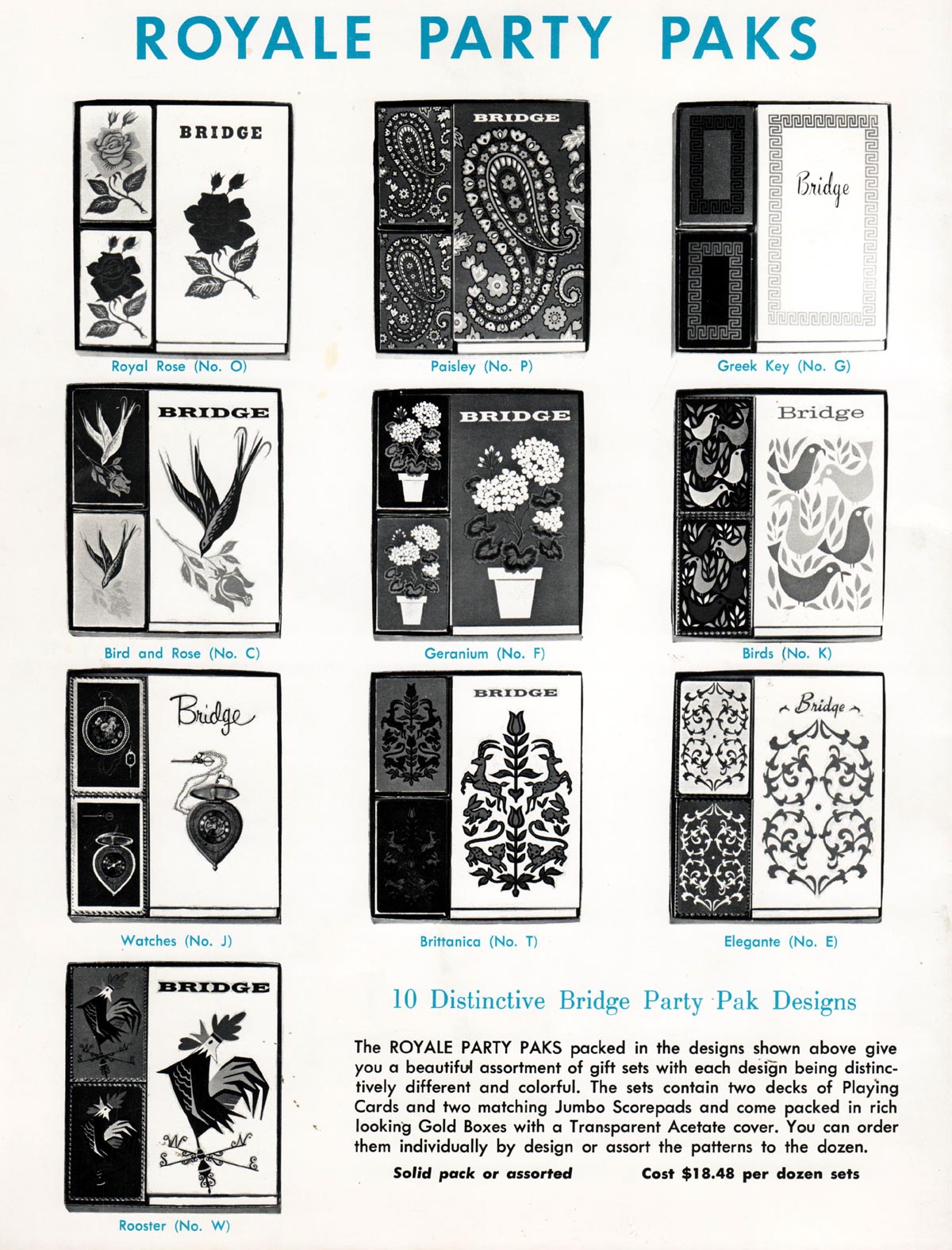 6 handed bridge playing cards designed by Ralph E. Peterson, 1966.