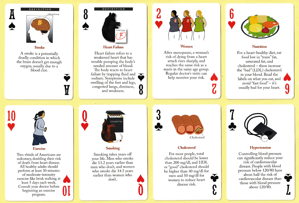 Useful information about heart health on every card.