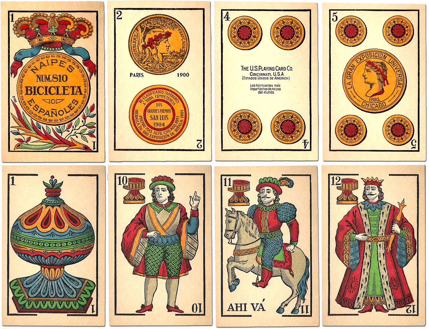 Above: an earlier example of USPCC Spanish-suited deck, trading on the 'Bicycle' brand but not yet translated into Spanish, c.1893.