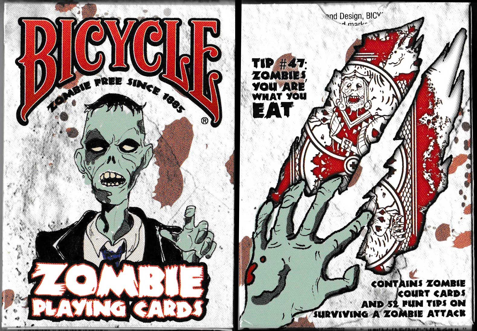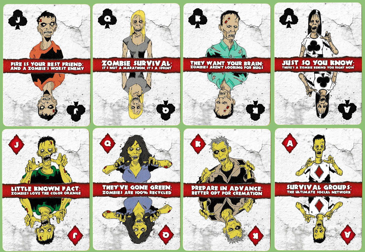 Bicycle Zombie playing cards with hints on how to survive a zombie attack, USA, 2012.