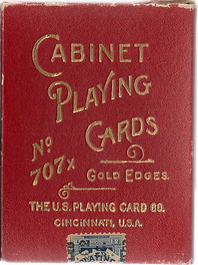 Up til the early 1900s the more expensive brands came in attractive colourful wrappers sealing the decks inside their boxes which were printed with the name and number of the brand with extra decorative artwork. As the popularity of Euchre declined, the Cabinet No.707 brand was changed to a regular 52-card deck with a new Joker.