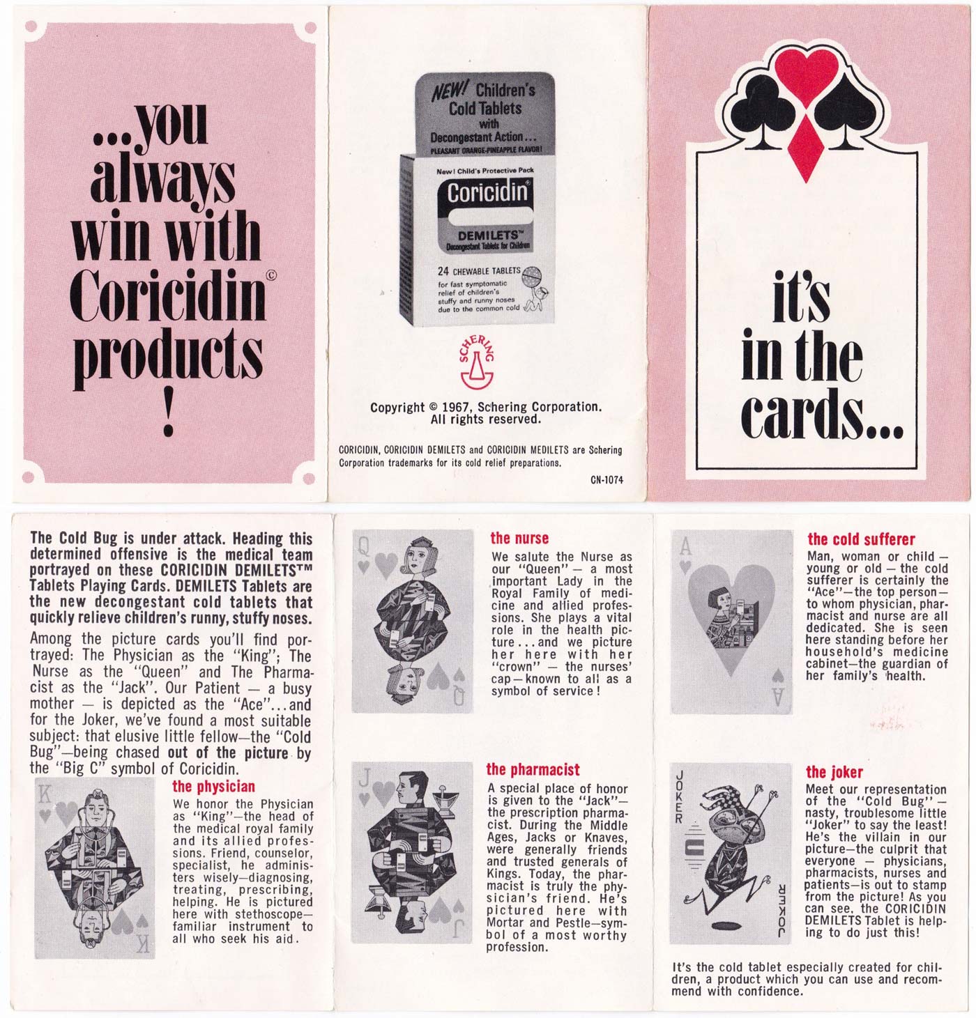 Coricidin Demilets pharmaceutical playing cards, 1967.