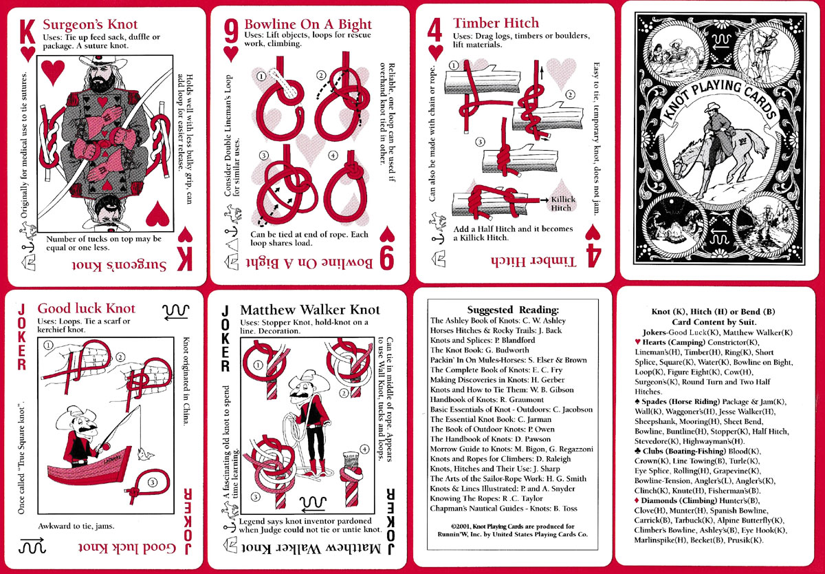Knot playing cards intended to teach a variety of useful and interesting knots, USA, 2000.