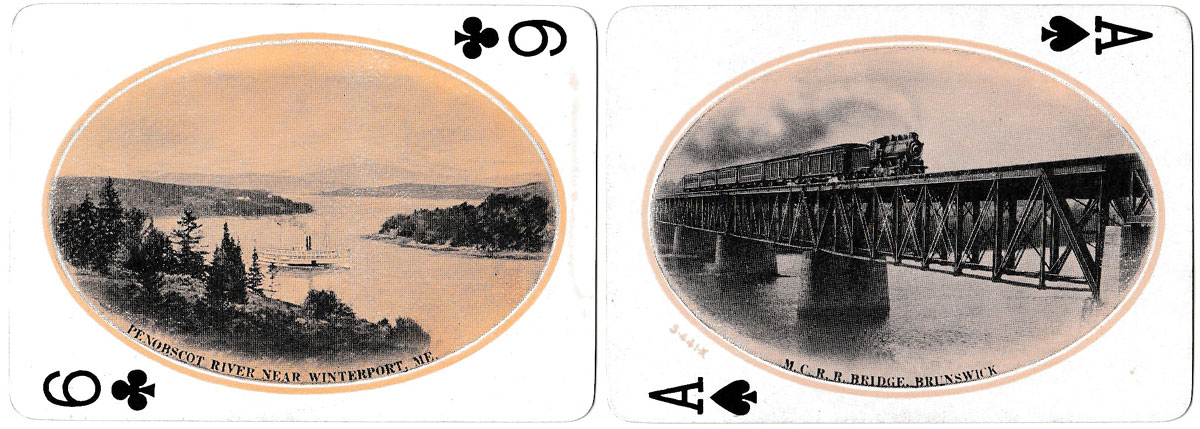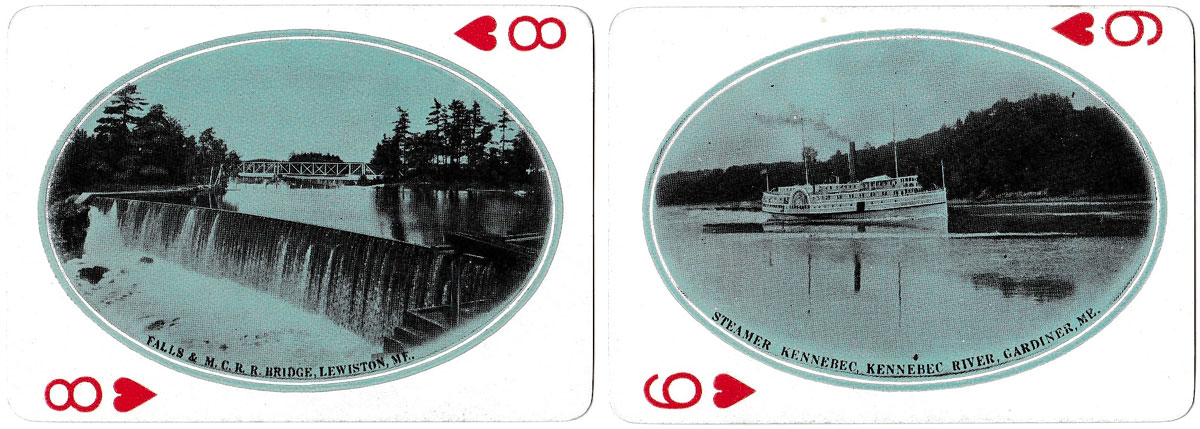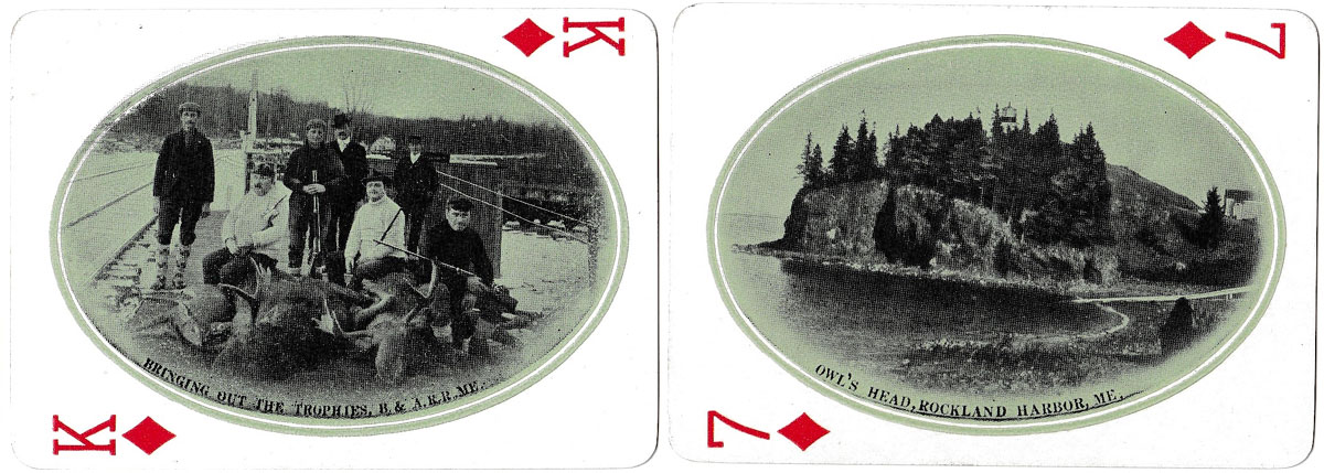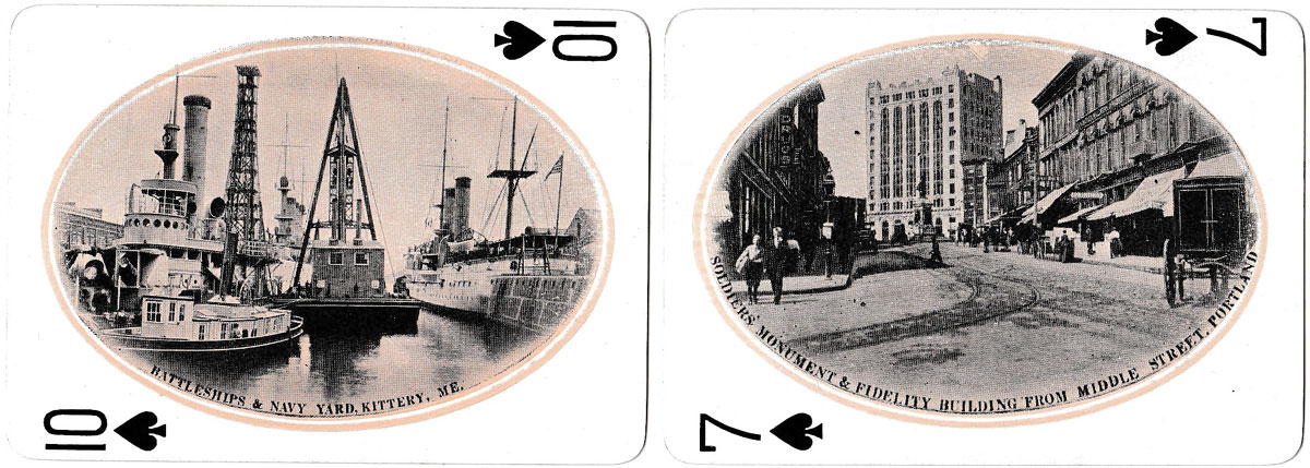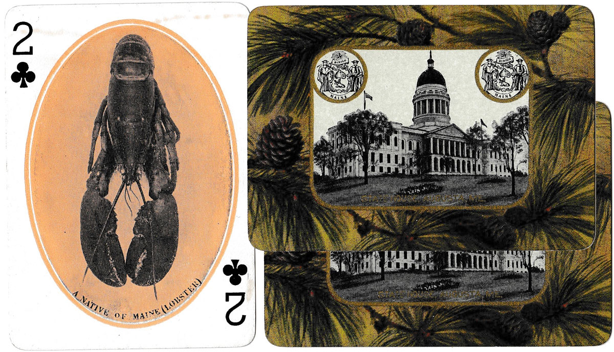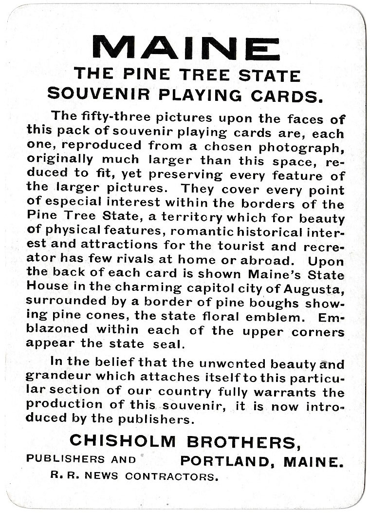 Above: Maine the Pine Tree State souvenir playing cards published by Chisholm Brothers, 1900.